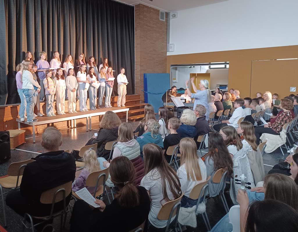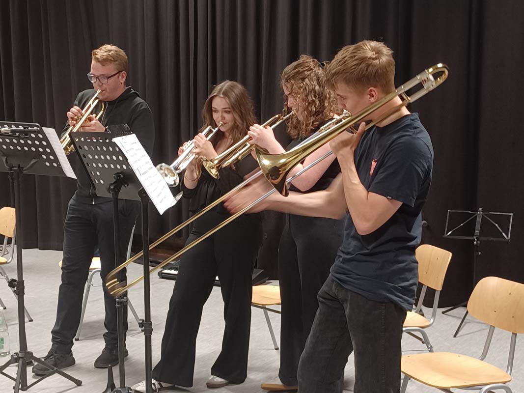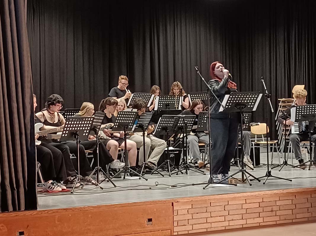 Die A-cappella-Gruppe „A’Cappellchen“ zeigte eine rhythmisch betonte Gesangseinlage. Band und Big Band, beide unter Leitung von Hanna Kunkel, setzten mit Rock- und Popsongs sowie Gesangseinlagen von Nicole Zwetzich und Kunkel selbst den Schlusspunkt.