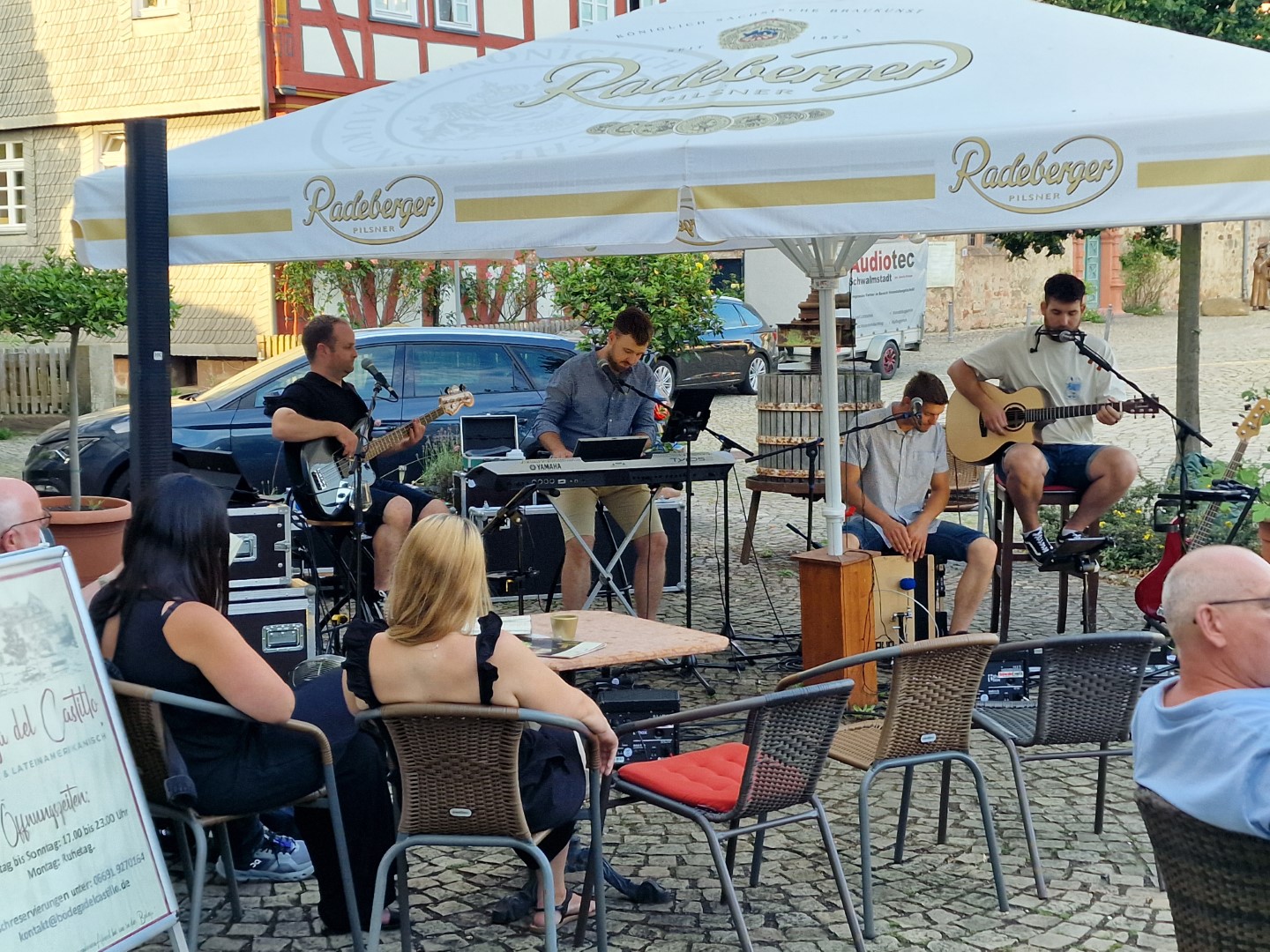SCHWALMSTADT-ZIEGENHAIN. Am Freitagabend verwandelte sich die Bodega del Castillo am Paradeplatz in Ziegenhain in eine musikalische Oase. Die Gruppe „Take This“, bestehend aus Dennis Krause, Hannes Riebeling, Daniel Schneider und Samuel Mühling, begeisterte über 50 Gäste mit einem Open-Air-Konzert an einem herrlich warmen Sommerabend.