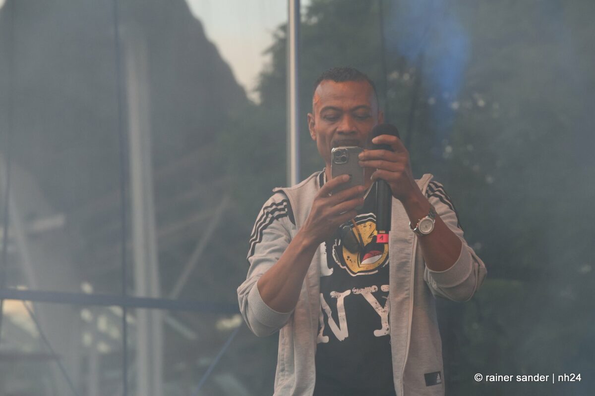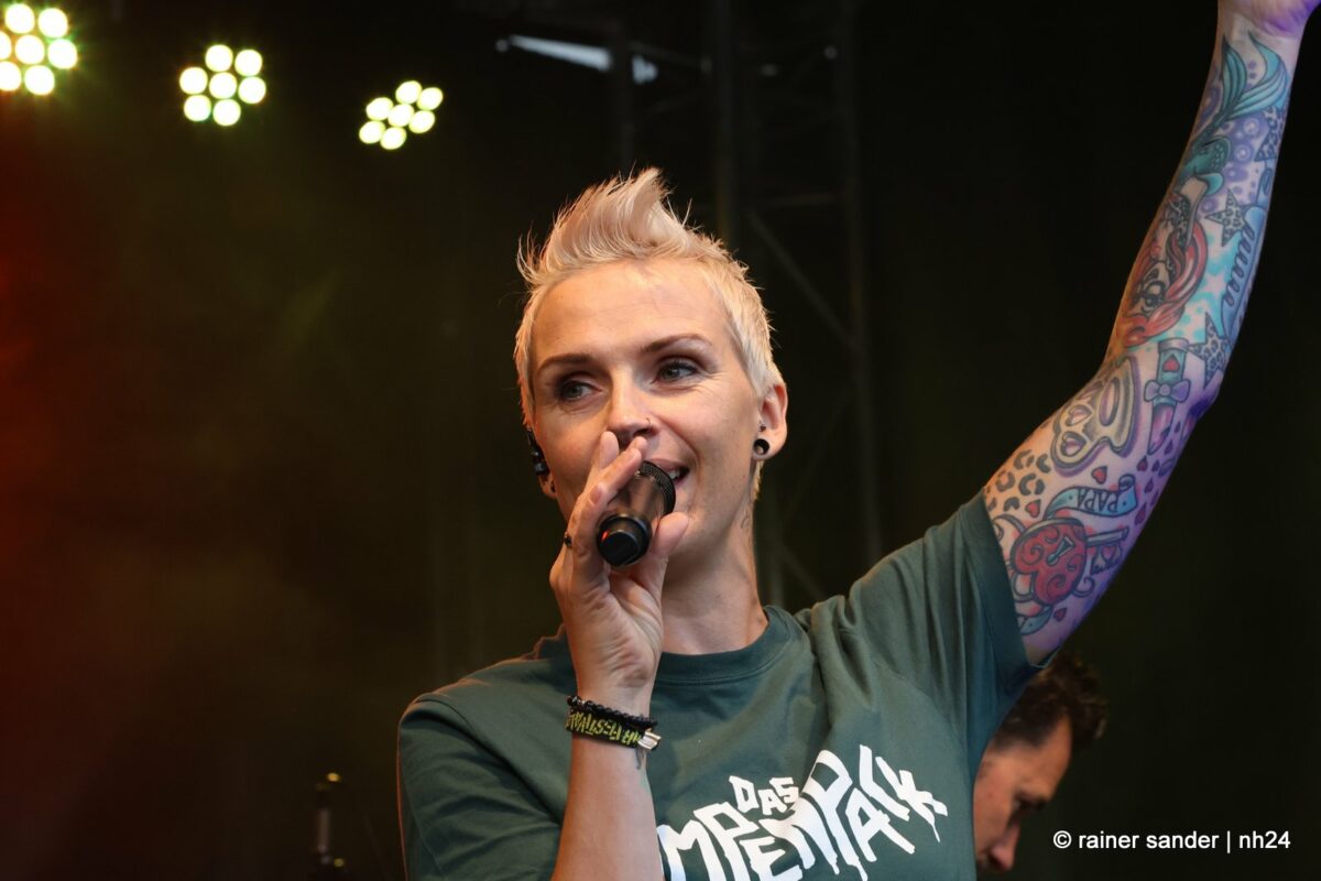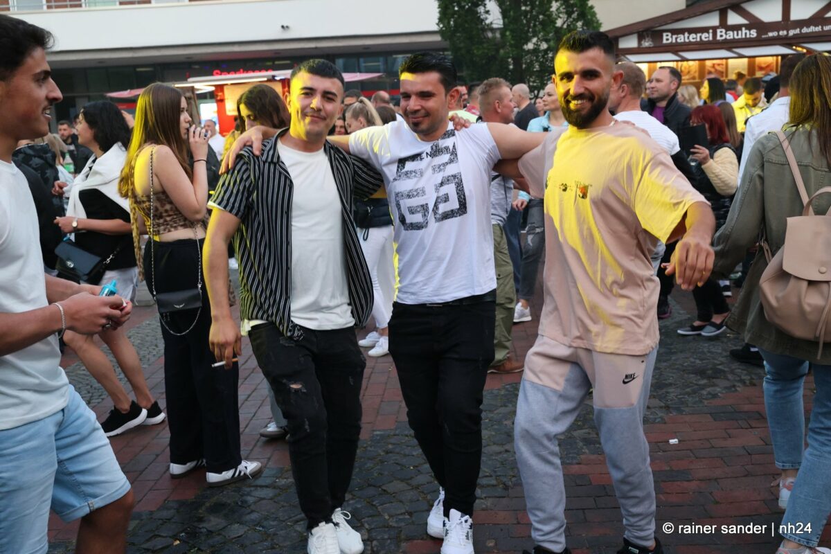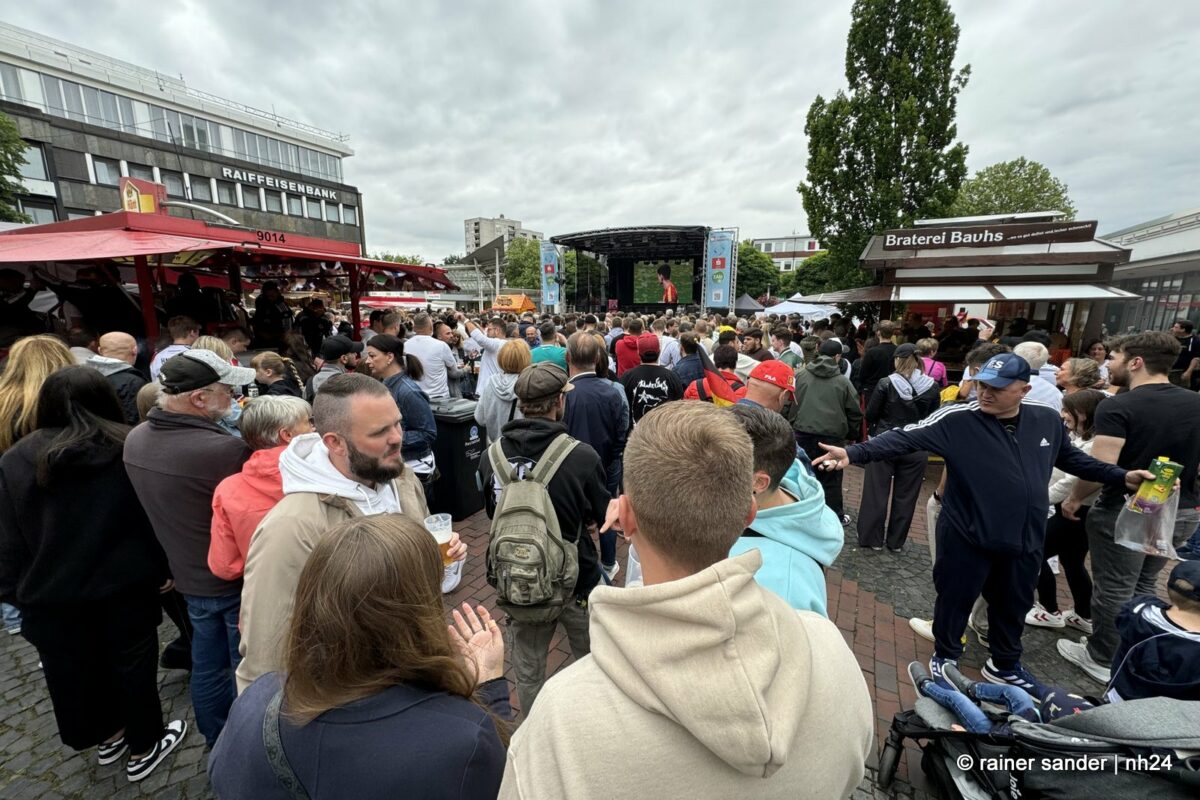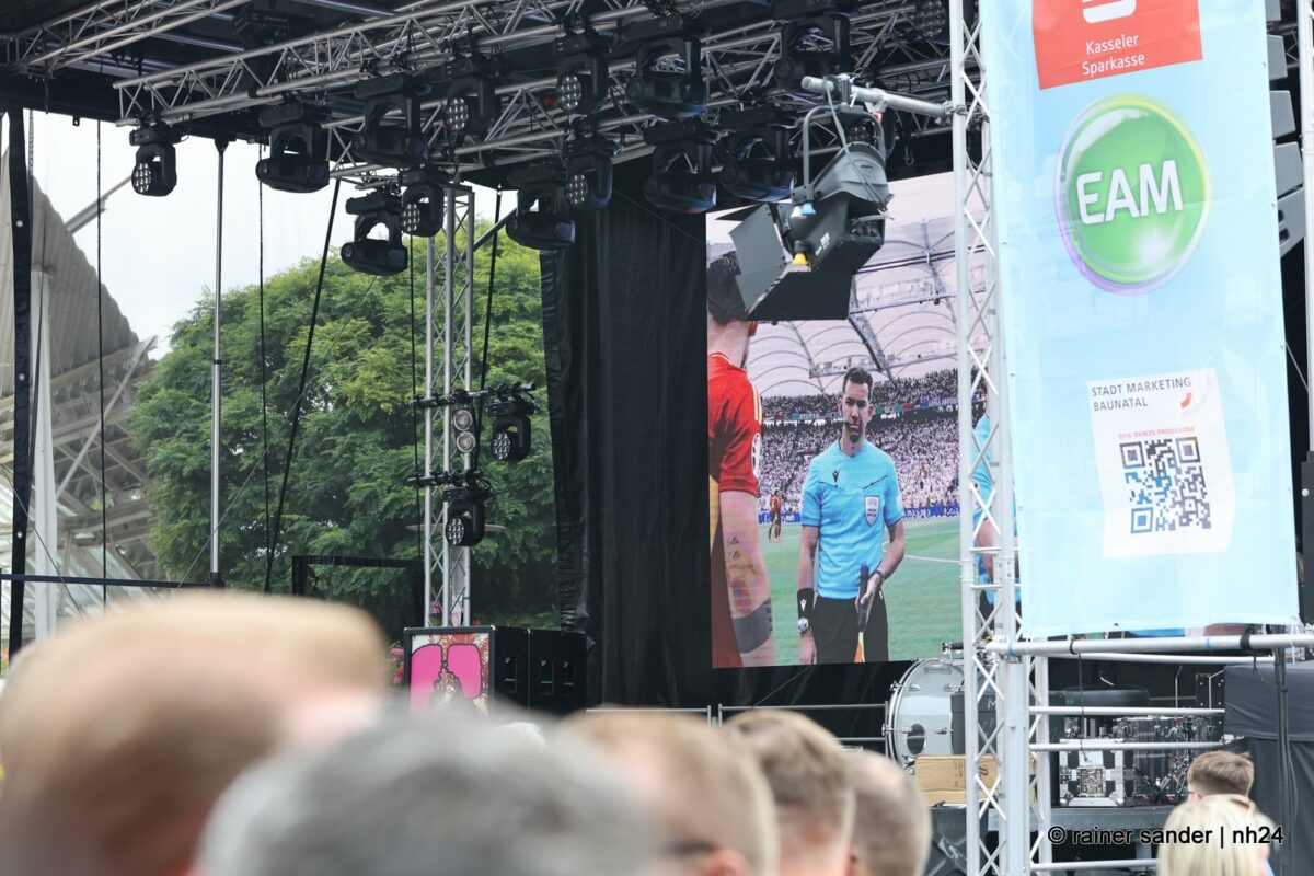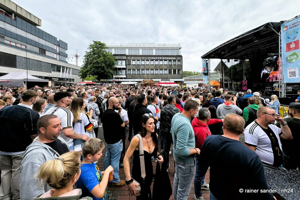 Die findet stets auf der gesperrten Friedrich-Ebert-Allee ihr Zuhause. Auf der Hauptbühne mitten im Marktplatz flossen nach einem abwechslungsreichen Tag mit vielen Baunataler Vereinen auf den drei Bühnen am Freitagabend ein paar Tränen beim Public Viewing. Etwa tausend Menschen waren zusammengekommen. Genau so viele wie möglich sind, um die Sicherheit auf dem Platz zu gewährleisten. Wegen der Verlängerung des Fußballspiels Deutschland gegen Spanien rockten John Diva & The Rockets of Love mit etwas Verspätung los und holten die Glamrock-Zeit zurück in die Gegenwart.