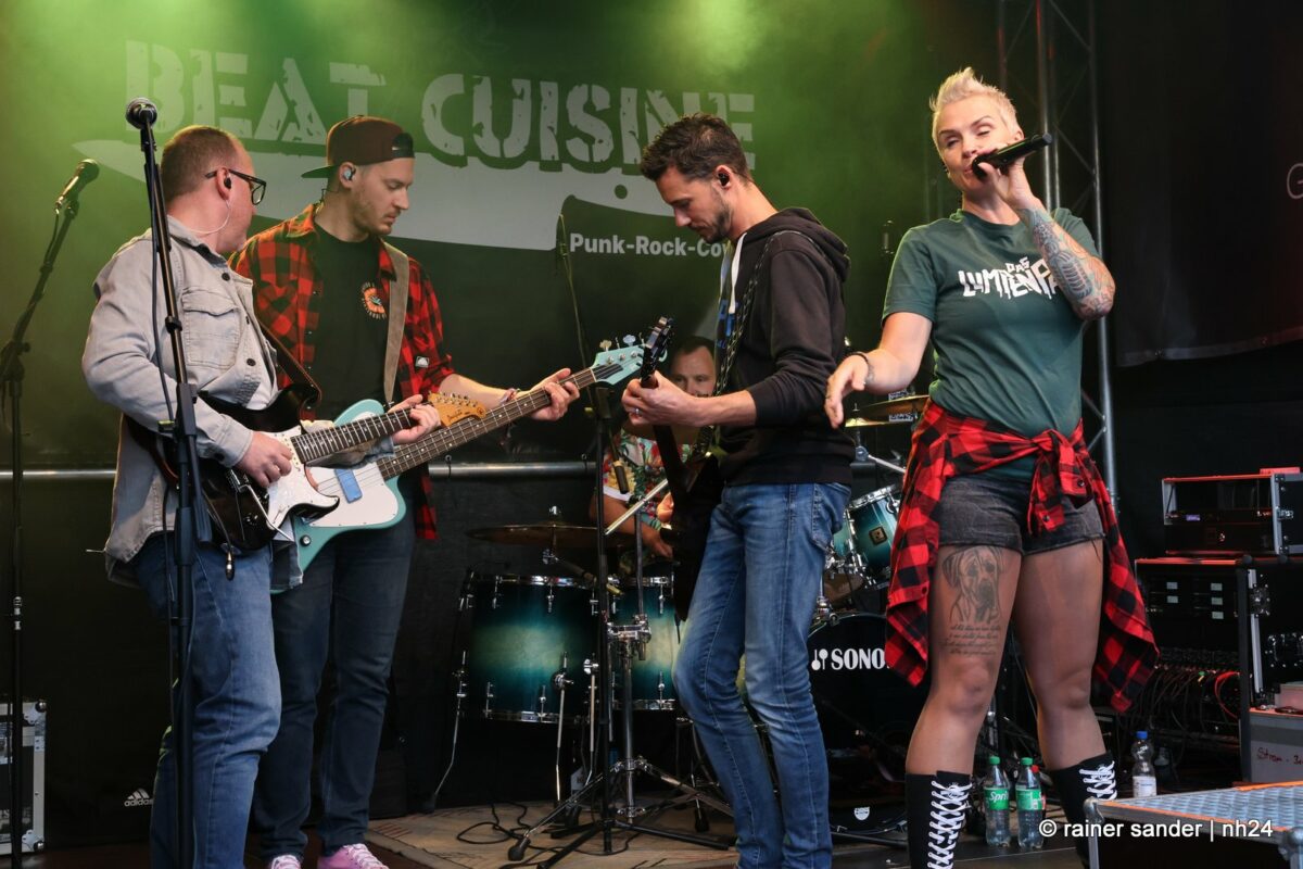 Am gestrigen Abend stand nun das Baunataler „Stadtfestival“ auf dem Programm. Zum ersten Mal gab es den ganzen Abend lang Party mit DJ 5INCO & DJ ZDEE auf der Bühne und Lightshow über dem Marktplatz. Rockig ging‘s auf der Klimperkasten-Bühne zu. Erst mit Fabian Fenner, sonst Frontman der Frielendorfer Band „Up For Debate“, dann mit Beat Cuisine um die Bad Wildunger (und zwischendurch Baunataler) Sängerin Kim Herrmann.