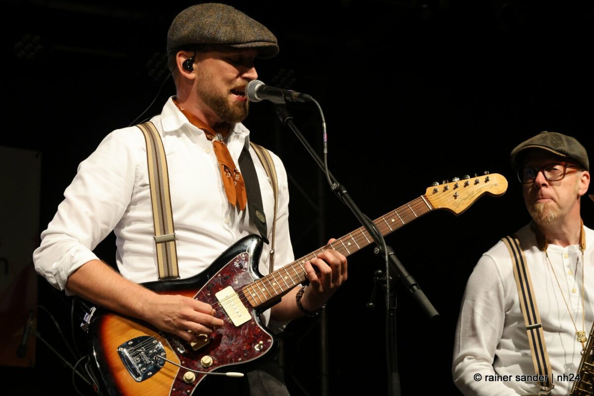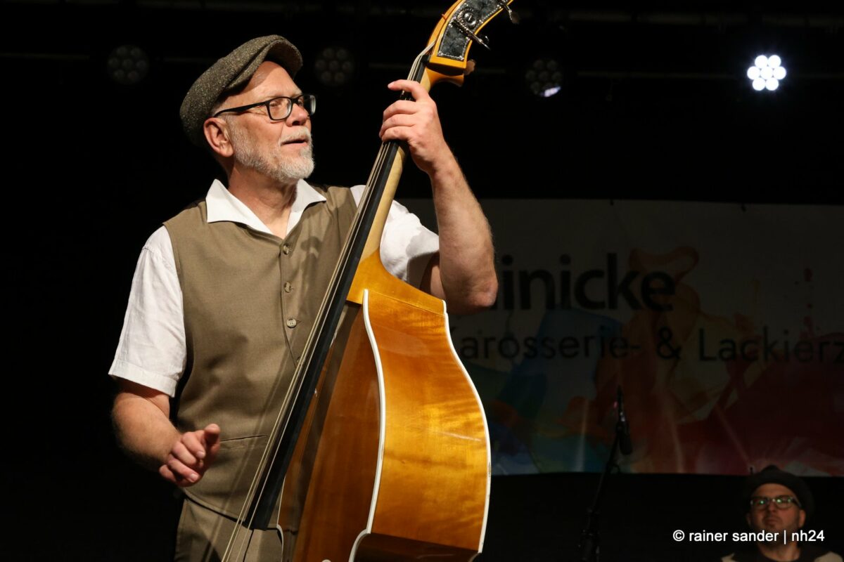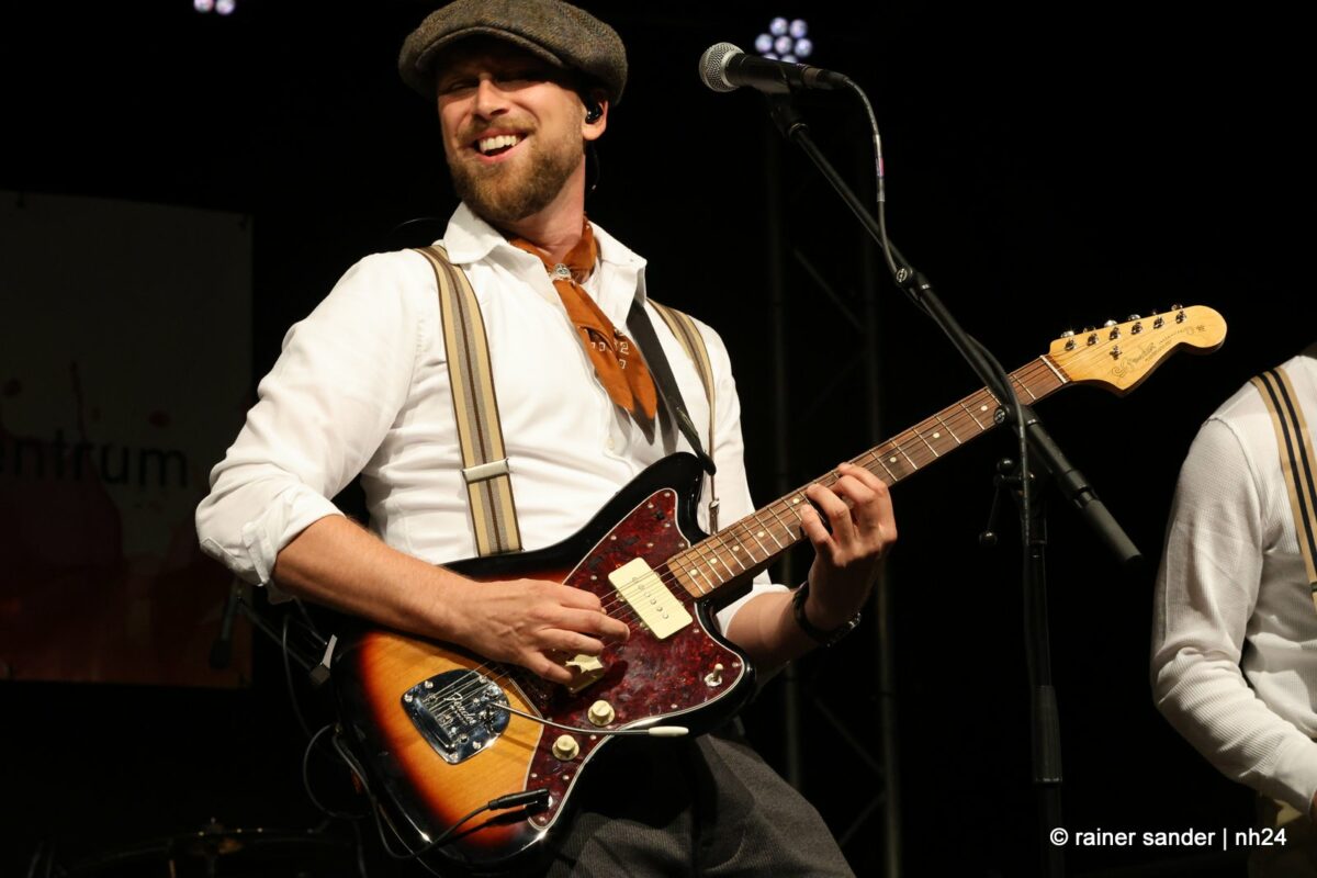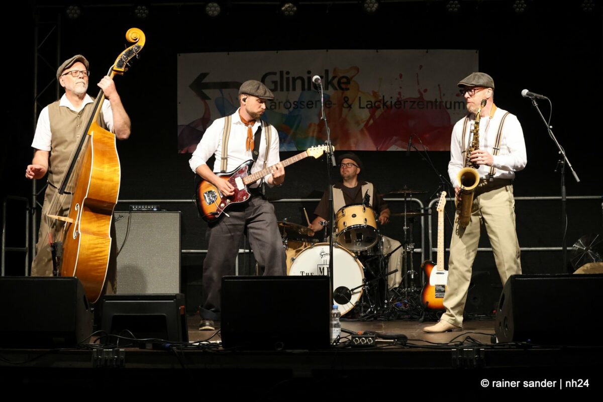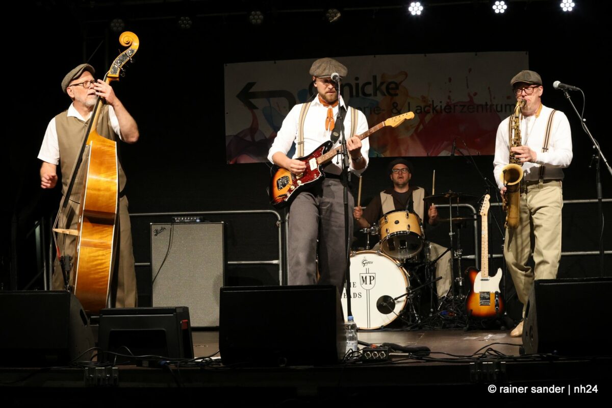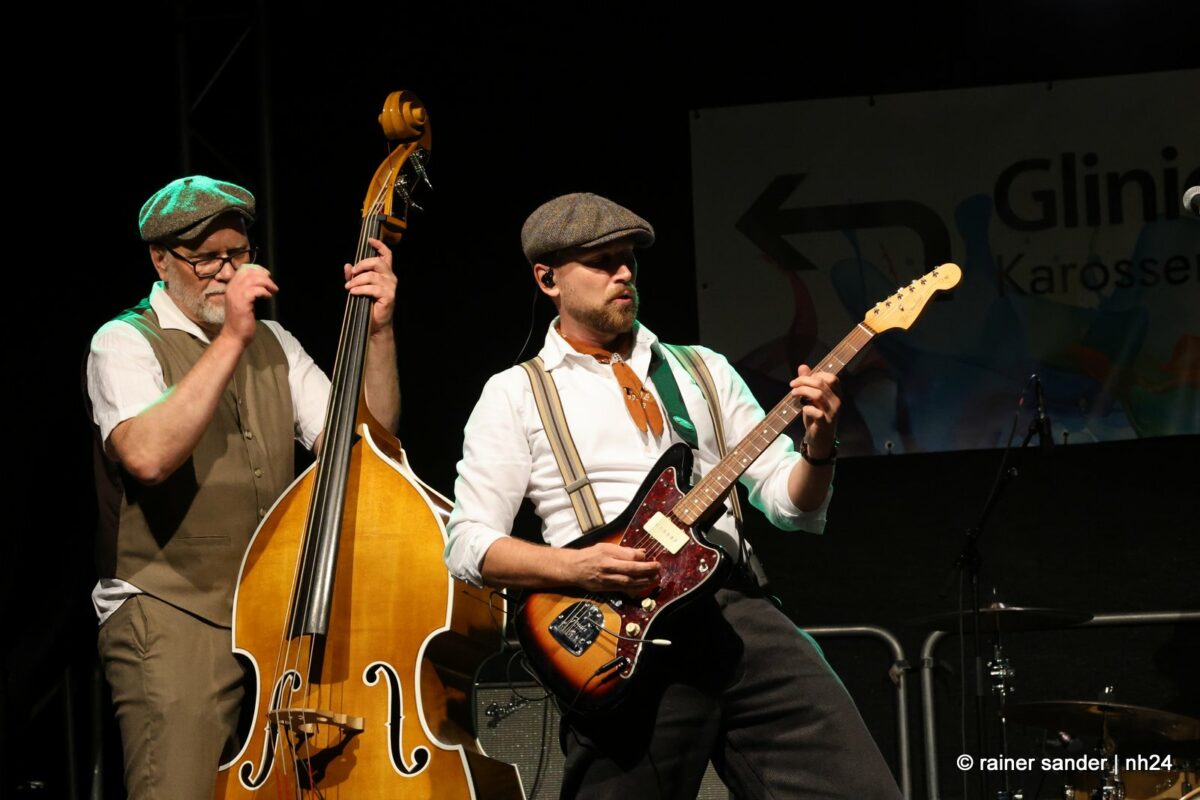 Ruhiger ging’s auf er der 34225-Bühne zu. Nach der Texas Blues Band holten „The Heads“ aus Marburg die Zeit des Rockabilly und des Rock’n’Roll zurück. Echt und original mit Kontrabass und Saxofon.