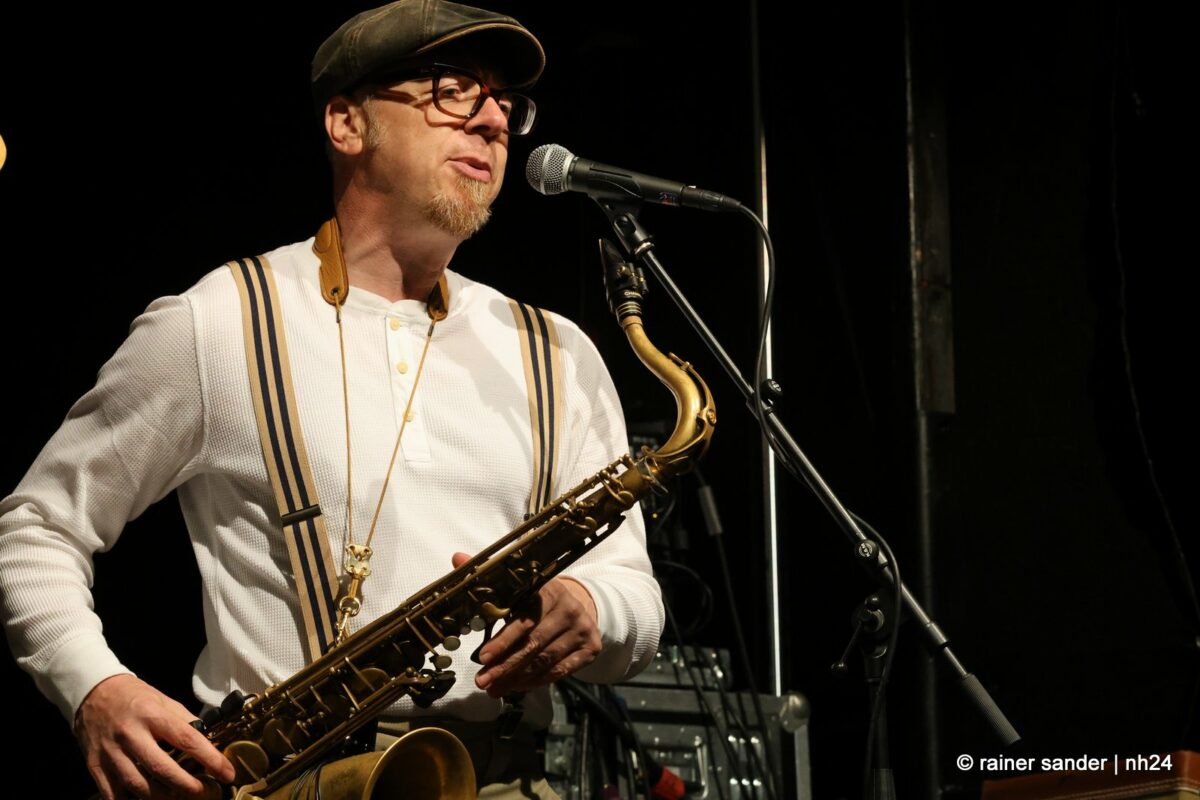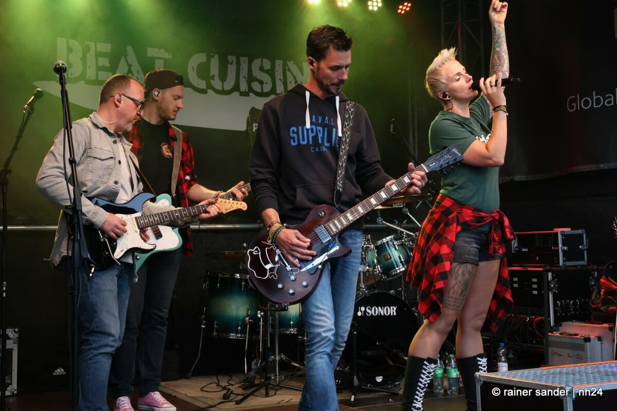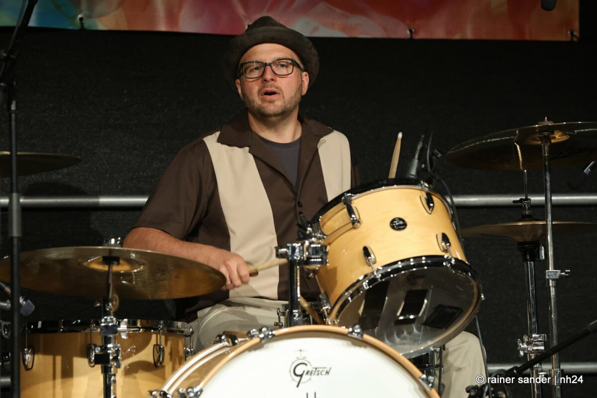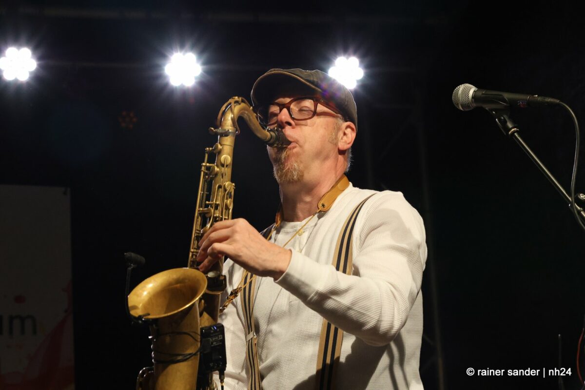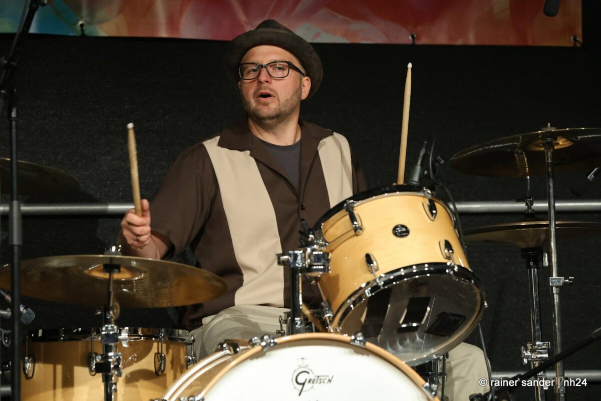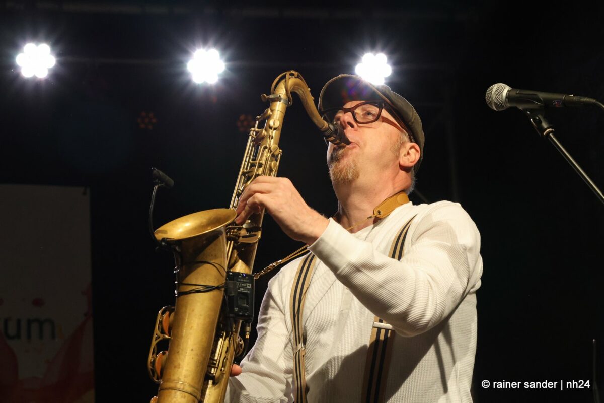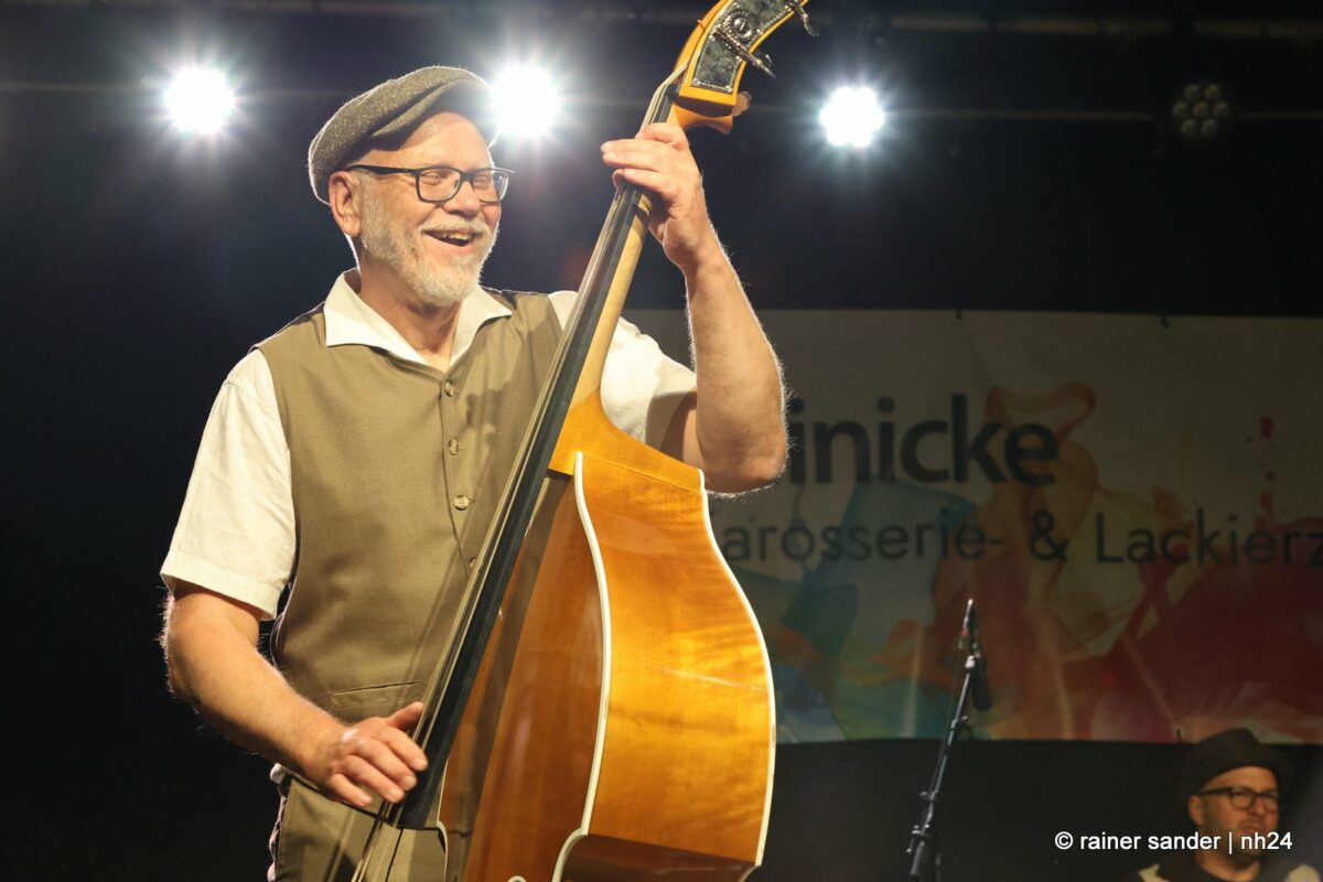 Ruhiger ging’s auf er der 34225-Bühne zu. Nach der Texas Blues Band holten „The Heads“ aus Marburg die Zeit des Rockabilly und des Rock’n’Roll zurück. Echt und original mit Kontrabass und Saxofon.