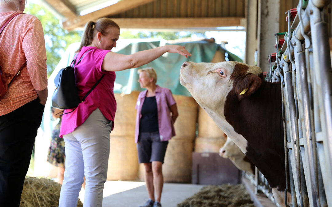Vor allem der Hofrundgang, vorbei am Schälbetrieb sowie dem Bullen- und Hühnerstall, und die Planwagenfahrt über die angrenzenden Getreide- und Kartoffelfelder überzeugten. Die dort produzierten Lebensmittel konnten an den verschiedenen Stationen auch direkt in Form von kleinen Häppchen probiert werden: So wurden unter anderem Produkte aus der Hephata-Biometzgerei, Gemüsesticks, gefüllte Eier, Dinkelbrot und Pellkartoffeln gereicht.