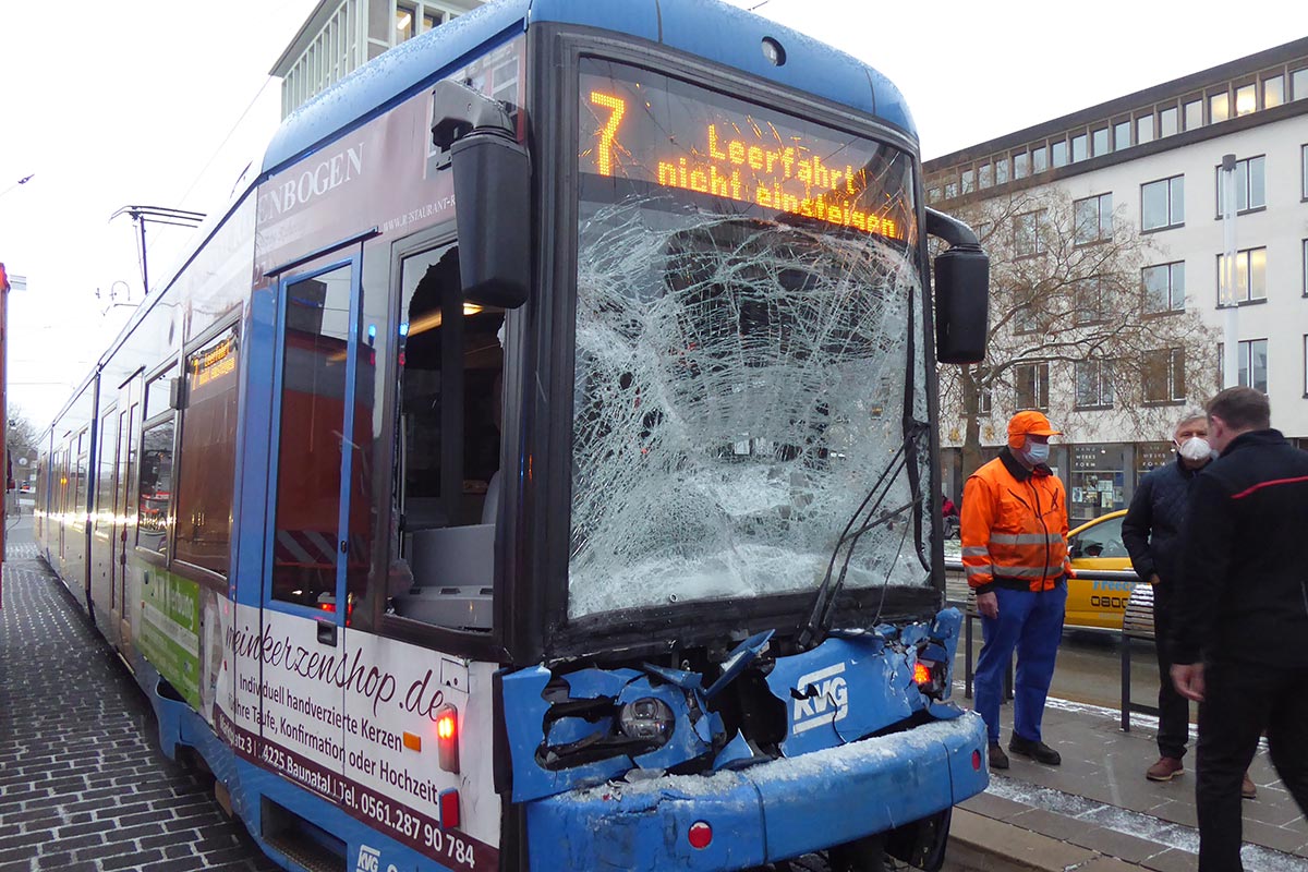 KASSEL. In Höhe des Scheidemannplatzes in Kassel prallten am Dienstagmorgen gegen 7:20 Uhr eine Straßenbahn und eine Regiotram aufeinander. Vier Personen wurden dabei leicht verletzt, an der Unfallstelle erstversorgt und anschließend vom Rettungsdienst in umliegende Krankenhäuser gebracht, berichtet Matthias Altmann, Einsatzleiter der Berufsfeuerwehr Kassel.