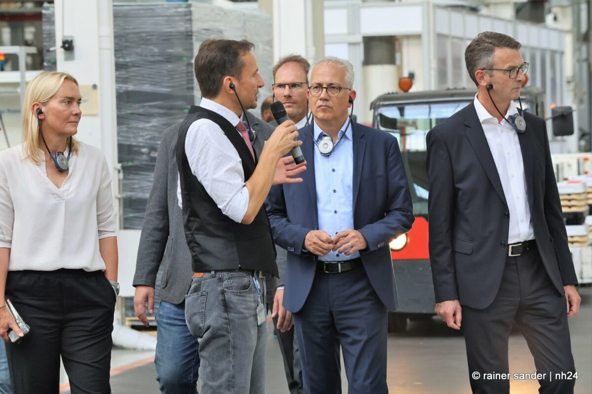 Die wichtigsten Gespräche bei Volkswagen fanden nicht vor der Öffentlichkeit statt. Beim Rundgang durchs Werk zeigte Al-Wazir viel Interesse an dem, was es zu sehen und zu hören gab. Der Gast fragte stets intensiv und wissbegierig bei Jörg Fenstermann (VW) und Bastian Greiner (Plettenberg) nach. Selbstverständlich ist für den stellvertretenden Ministerpräsidenten der GRÜNEN das Thema Nachhaltigkeit und Klimaschutz gerade das vordergründigste.