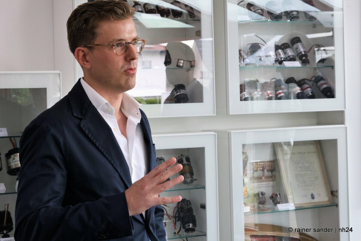 Wie sehr und doch zugleich unterschiedlich verschiedene Branchen im gleichen Segment mit dem chinesischen Markt umgehen, wurde beim zweiten Besuchstermin offensichtlich. Die Firma Plettenberg in Baunatal hat ihre wesentliche Transformation schon vor Jahren hinter sich gebracht. Bei der Betriebsgründung 1935 durch Großvater Plettenberg ging es noch um Laubsägearbeiten. Nach dem Zweiten Weltkrieg wurde das Unternehmen zum Fachbetrieb für Modellbau. Dafür wurden auch Elektromotoren benötigt, die schließlich selbst produziert wurden und heute den Alltag im Unternehmen bestimmen. Nach der zweifachen Transformation durch Produktumstellungen ist inzwischen eine weitere Transformation gelungen. Motoren für den Modellbau werden nicht mehr produziert, heute geht es um Hightechprodukte, in denen es auf Gewicht, niedrige Drehzahlen und Sparsamkeit ankommt, beispielsweise für Motoren, die in Drohnen zum Einsatz kommen. Sie müssen leicht sein und lange laufen, vor allem müssen sie zertifiziert sein.