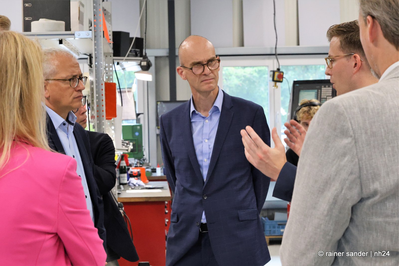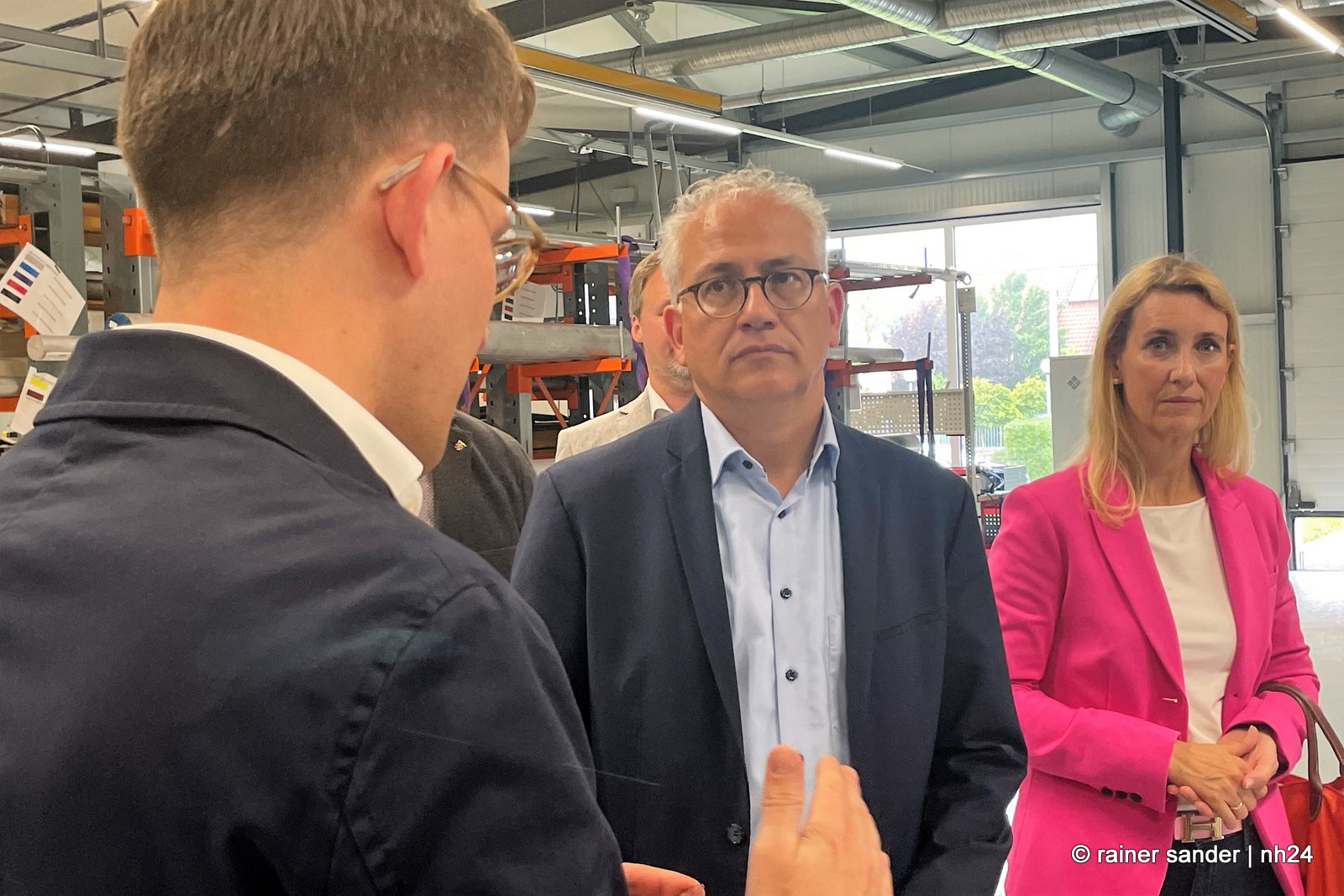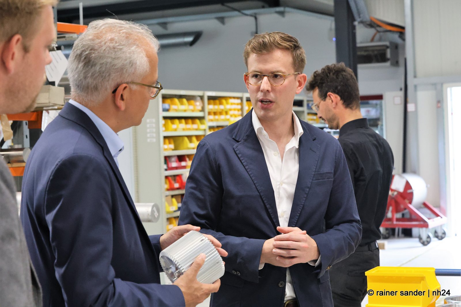 Die wichtigsten Gespräche bei Volkswagen fanden nicht vor der Öffentlichkeit statt. Beim Rundgang durchs Werk zeigte Al-Wazir viel Interesse an dem, was es zu sehen und zu hören gab. Der Gast fragte stets intensiv und wissbegierig bei Jörg Fenstermann (VW) und Bastian Greiner (Plettenberg) nach. Selbstverständlich ist für den stellvertretenden Ministerpräsidenten der GRÜNEN das Thema Nachhaltigkeit und Klimaschutz gerade das vordergründigste.