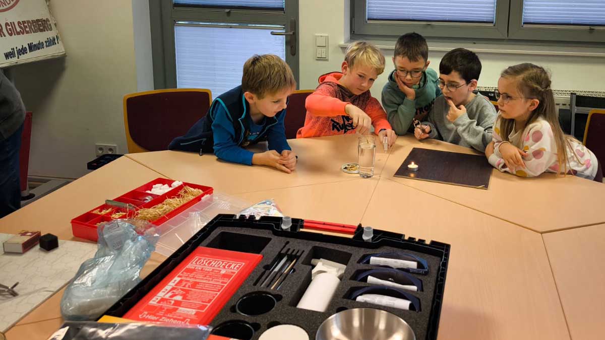 Mit dem Experimentenkoffer können die Betreuerinnen und Betreuer gemeinsam mit den Kindern zahlreiche Versuche rund um das Thema „Brennen und Löschen“ durchführen. So lernen die jungen Mitglieder spielerisch wichtige Grundlagen der Feuerwehrarbeit kennen.