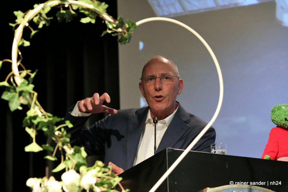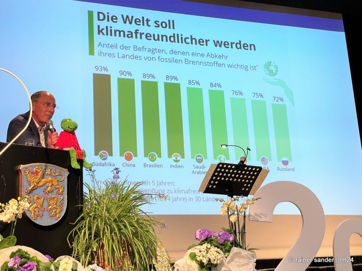 Thomas Ranft aus der ARD-Wetterredaktion knüpfte daran an: „Ich sage Ihnen, dass sie in Homberg die Welt retten können. Sein Thema: „Mehr als gute Vorsätze: mit frischer Energie gegen die Klimakrise.“