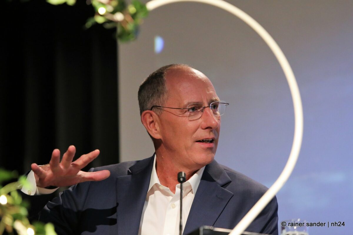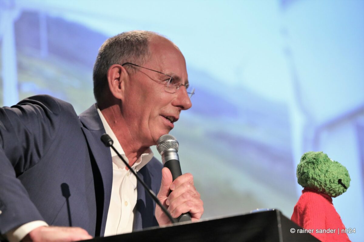 Die gute Nachricht ist, „Es gibt für 90 Prozent unserer Probleme bereits Lösungen. Es mangelt nicht am Wissen, sondern am Tun!“ Hätte man dem T-Rex damals gesagt, vielleicht hast Du eine Chance, wenn Du kein Fleisch mehr isst, er hätte Blätter gelutscht. Heute würden wir gerne einen Stuhlkreis mit allen Ländern der Erde bilden. Faktisch liegt in den Ländern, in denen die Folgen spürbar sind, die Bereitschaft, aus Verbrennung auszusteigen, bei 90 Prozent. In Deutschland bei 75 Prozent. Ranft gibt eine Rechenaufgabe zum Nachdenken: „In Indien lässt sich eine Kilowattstunde für 1 Cent produzieren. Wenn die loslegen, können wir uns warm anziehen. Wir sind nicht, wer wir sind, weil wir Autos gebaut haben, sondern weil wir Technologieführer waren. Jetzt verlieren wir gerade die Technologie“. Sein guter Rat: „Lächeln über den produzierten Strom der eigenen PV-Anlage.“ Lächeln steckt an und andere wollen dann auch lächeln … so funktioniert es mit der Energiewende!