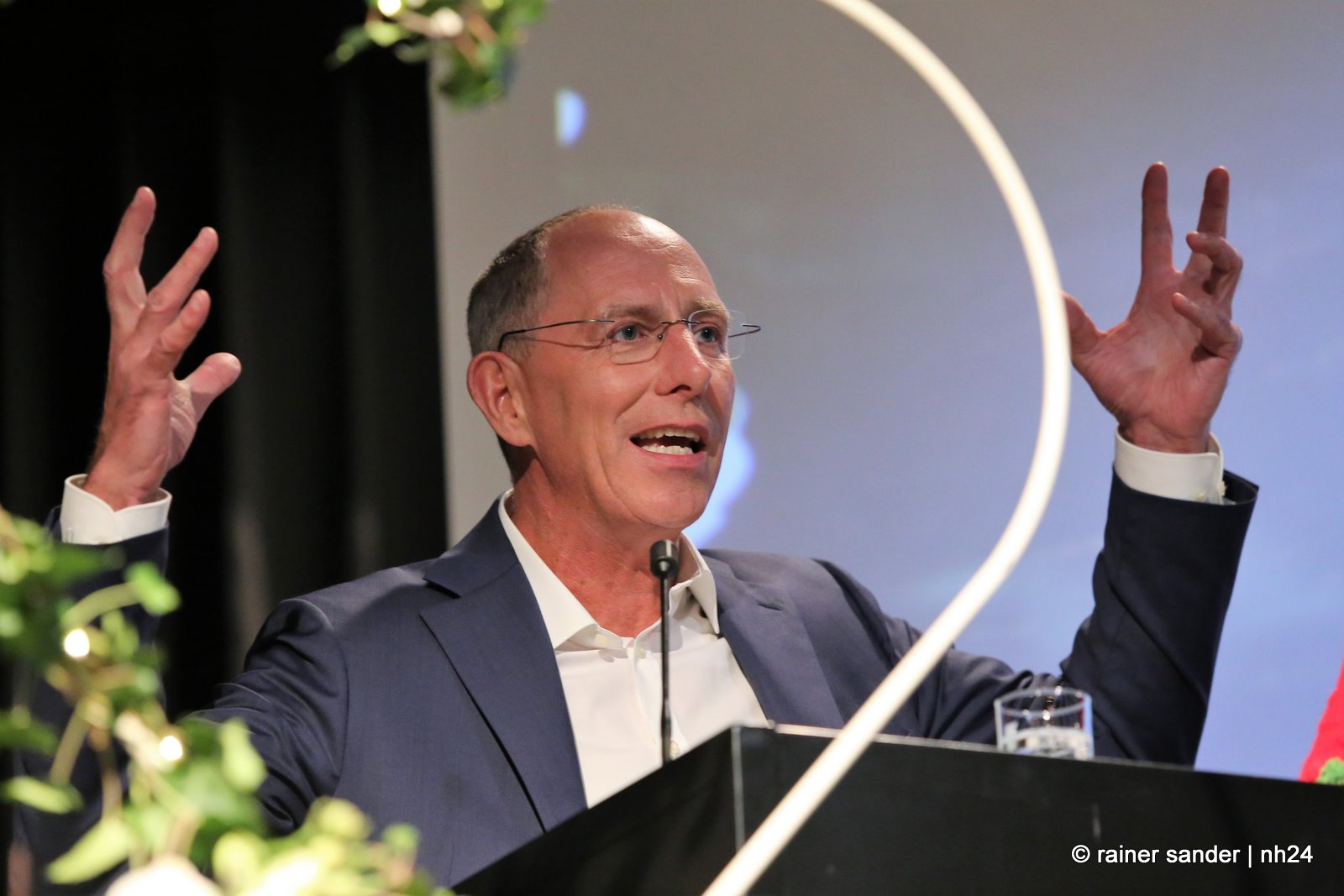 Die gute Nachricht ist, „Es gibt für 90 Prozent unserer Probleme bereits Lösungen. Es mangelt nicht am Wissen, sondern am Tun!“ Hätte man dem T-Rex damals gesagt, vielleicht hast Du eine Chance, wenn Du kein Fleisch mehr isst, er hätte Blätter gelutscht. Heute würden wir gerne einen Stuhlkreis mit allen Ländern der Erde bilden. Faktisch liegt in den Ländern, in denen die Folgen spürbar sind, die Bereitschaft, aus Verbrennung auszusteigen, bei 90 Prozent. In Deutschland bei 75 Prozent. Ranft gibt eine Rechenaufgabe zum Nachdenken: „In Indien lässt sich eine Kilowattstunde für 1 Cent produzieren. Wenn die loslegen, können wir uns warm anziehen. Wir sind nicht, wer wir sind, weil wir Autos gebaut haben, sondern weil wir Technologieführer waren. Jetzt verlieren wir gerade die Technologie“. Sein guter Rat: „Lächeln über den produzierten Strom der eigenen PV-Anlage.“ Lächeln steckt an und andere wollen dann auch lächeln … so funktioniert es mit der Energiewende!