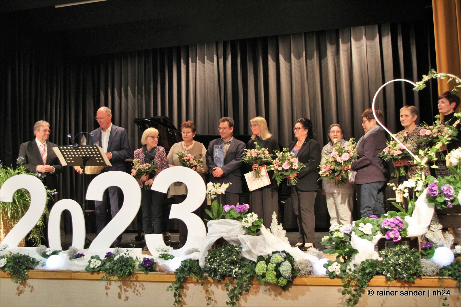Eine Tradition, die zum Neujahrsempfang in Homberg gehört, sind Ehrungen. Fünf verdiente Persönlichkeiten bekamen die Ehrenplakette, die zweithöchste Auszeichnung nach der Ehrenbürgerschaft verliehen: Gretel Döll, Liesbeth Kaufmann, Inge Koch, Edith Köhler und Lydia Köhler waren gestern die geehrten. Für den musikalischen Rahmen sorgten Karin Stihl-Stracke (Gesang) und Markus Klöpfel (Flügel) mit Musical- und Film-Melodien. Anschließend gab es ein kaltes Buffet, das von ehrenamtlich tätigen Frauen zusammengestellt wurde. (rs)