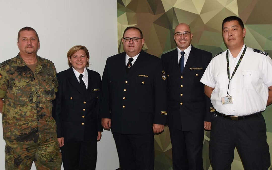 Kasernenfeldwebel Oberstabsfeldwebel Thomas Pauli, Kreisbrandinspektorin Tanja Dittmar, Kreisbrandmeister Thomas Schier, stellv. Kreisbrandinspektor Michael von Bredow, Leiter der Bundeswehrfeuerwehr Fritzlar Gunho Rihm (wal)