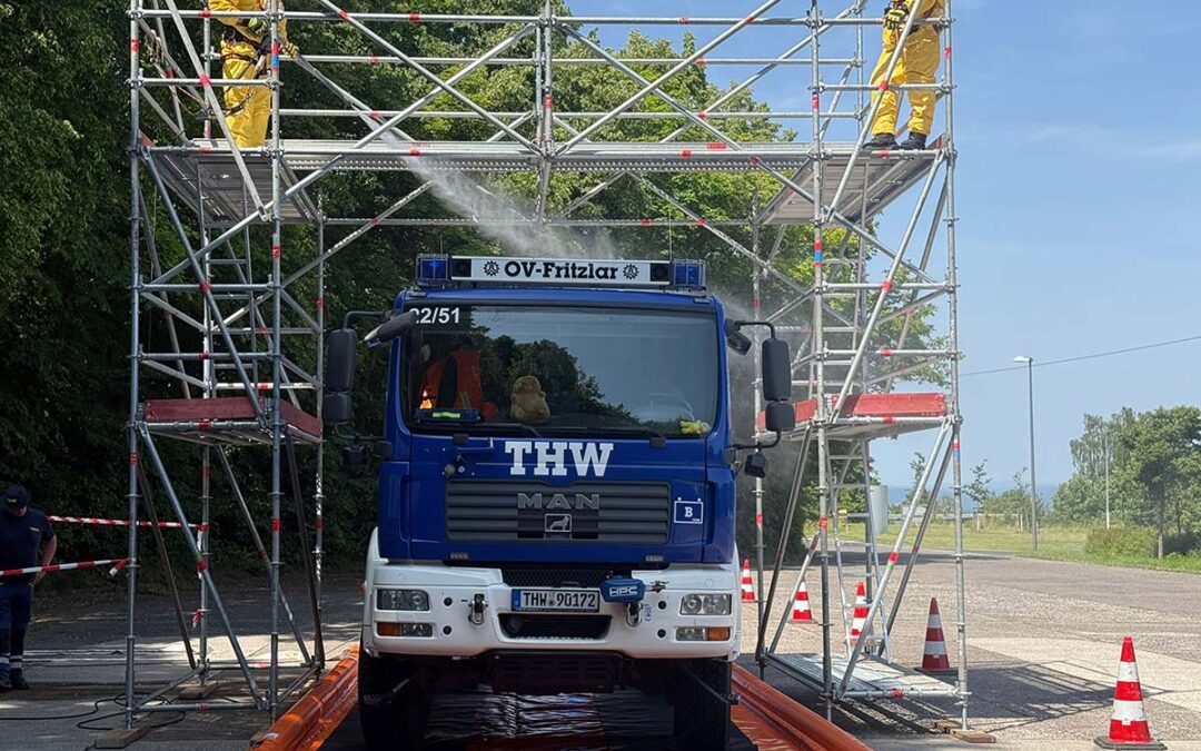 Beim jüngsten Treffen in Homberg stand neben theoretischen Fachvorträgen vor allem die Praxis im Mittelpunkt: Das Technische Hilfswerk (THW) Fritzlar baute eine Dekontaminationsschleuse auf, wie sie im Ernstfall zur Desinfektion von Fahrzeugen eingesetzt wird. Anschließend demonstrierten die THW-Einsatzkräfte die Abläufe und erklärten die technischen Anforderungen.