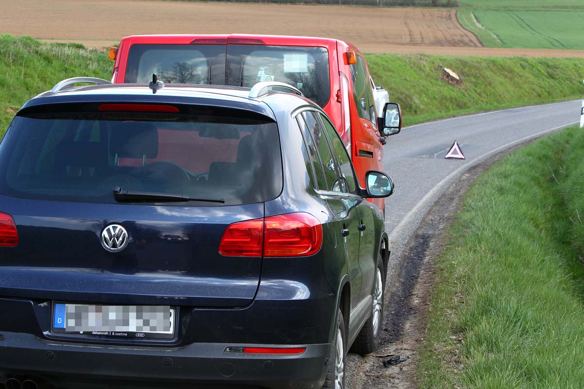 Ein 36-Jähriger aus Neuental war gegen 15:25 Uhr in Richtung Neuental unterwegs. Zwischen dem Friedhof in Todenhausen und der folgenden Kuppe soll er eine Linkskurve geschnitten haben. Ein entgegenkommender Kleinbusfahrer (67 aus Frielendorf) sah sich zu einer starken Bremsung gezwungen, um einen Zusammenprall zu verhindern. Dies übersah der folgende 78-jährige Fahrer des VW-SUV und fuhr auf den Bus auf. Zu einer Berührung der entgegenkommenden Autos kam es nicht.