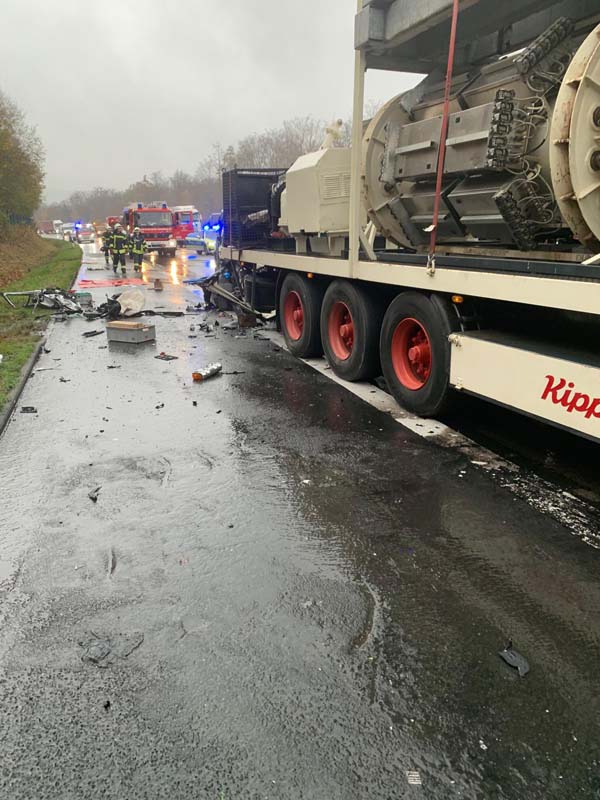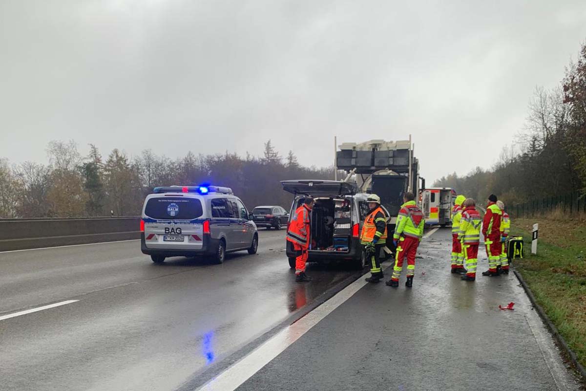 KNÜLLWALD. Am Mittwochmittag, 13. November, ereignete sich gegen 13:15 Uhr ein schwerer Verkehrsunfall auf der A 7 in Fahrtrichtung Süd zwischen den Anschlussstellen Homberg (Efze) und Bad Hersfeld-West. Nach ersten Erkenntnissen waren ein Lkw und ein Pkw an dem Unfall beteiligt. Polizei, Rettungsdienst und Feuerwehr Homberg sind im Einsatz.