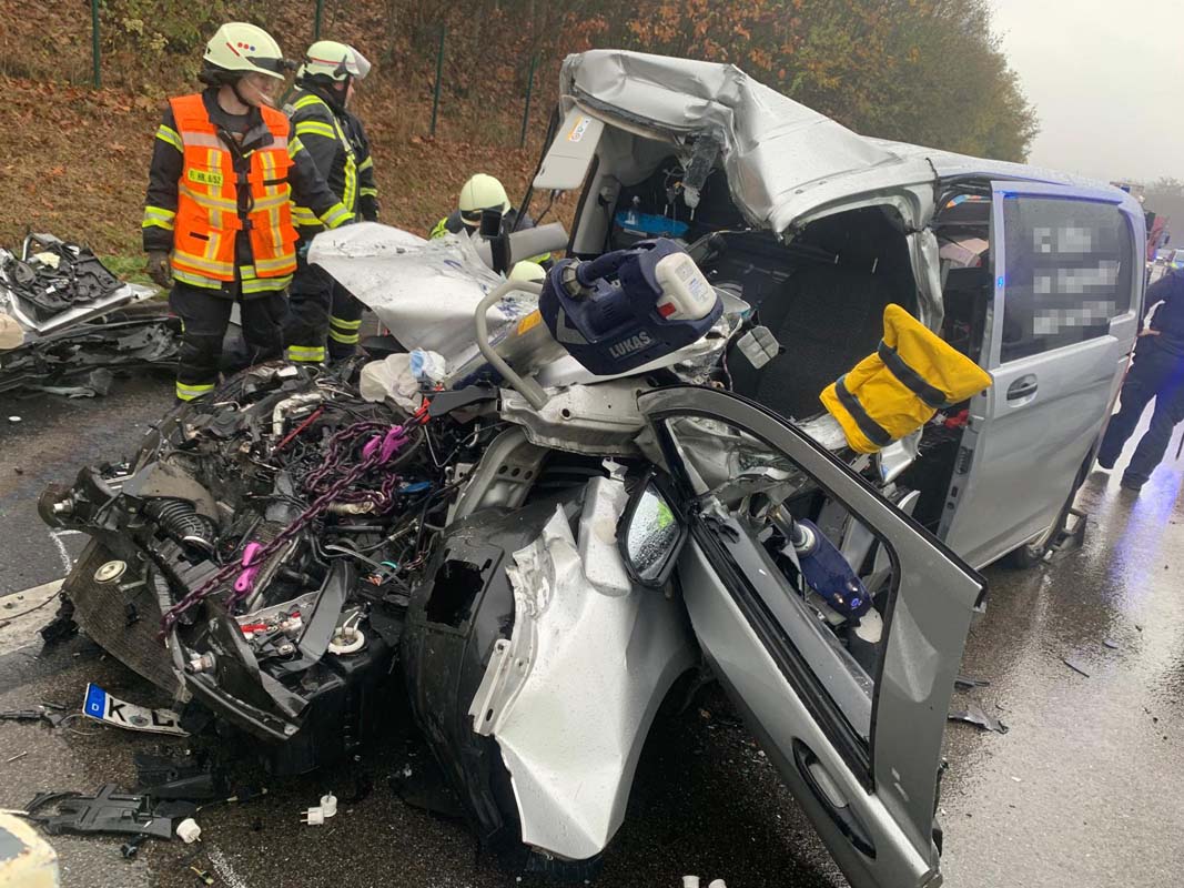 Der Aufprall zerstörte den Fahrerraum des Vito komplett. Der 36-Jährige wurde darin eingeklemmt und starb noch am Unfallort. Rettungskräfte konnten nur noch seinen Tod feststellen. Zunächst wurde nicht ausgeschlossen, dass eine weitere Person im Fahrzeug war. Die Feuerwehr setzte eine Winde ein, um den Vito vom Sattelzug zu lösen, und öffnete den Beifahrerbereich mit hydraulischem Gerät. Es bestätigte sich, dass sich glücklicherweise niemand auf dem Beifahrersitz befand, so Hombergs Wehrführer Matthias Poppitz.