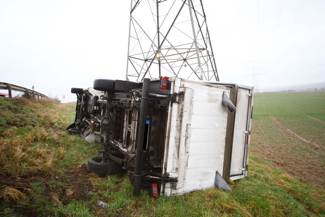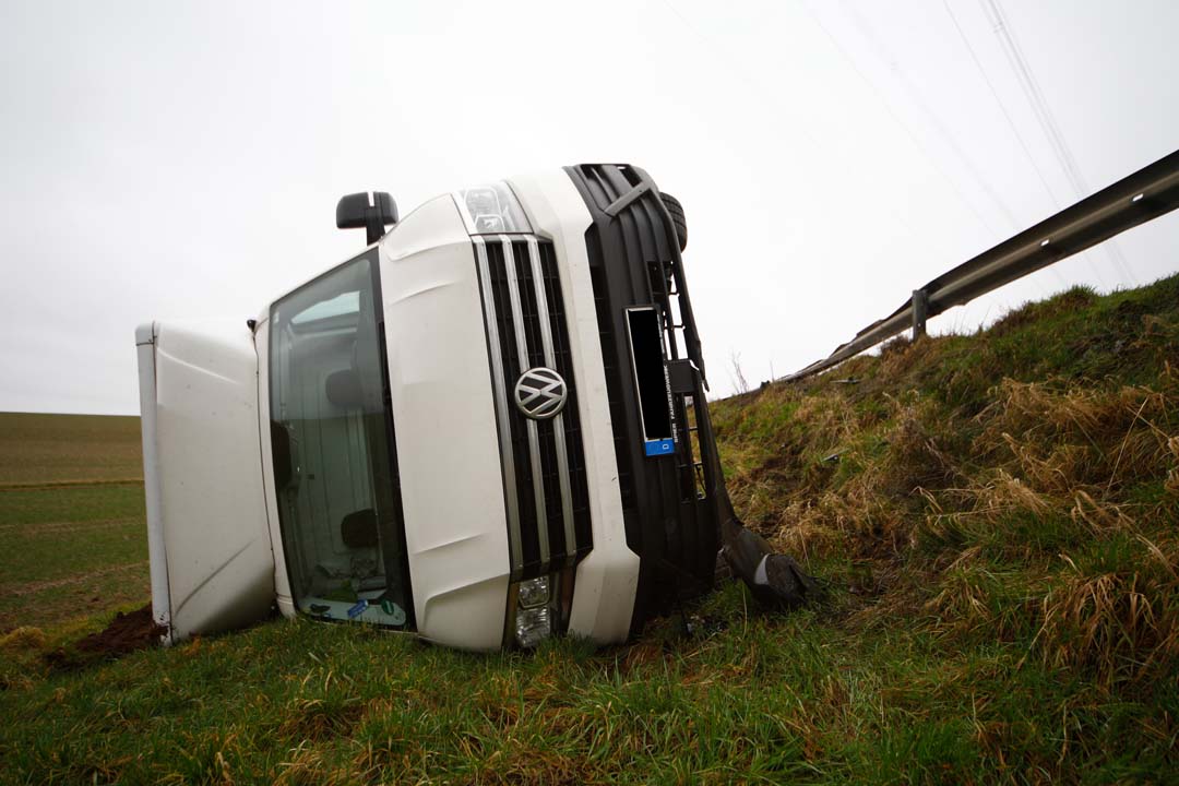 Der junge Mann war in Richtung Treysa unterwegs, als ihm in einer Linkskurve teils auf seiner Fahrspur ein Lkw entgegenkam. Um einen Zusammenprall zu verhindern, wich er nach rechts aus, durchbrach die Leitplanke und rutschte den Abhang hinunter. Der Transporter kam auf der rechten Seite zum Liegen.