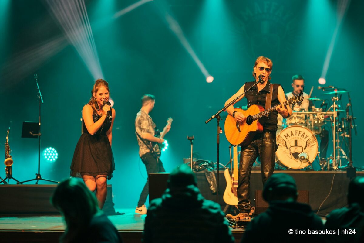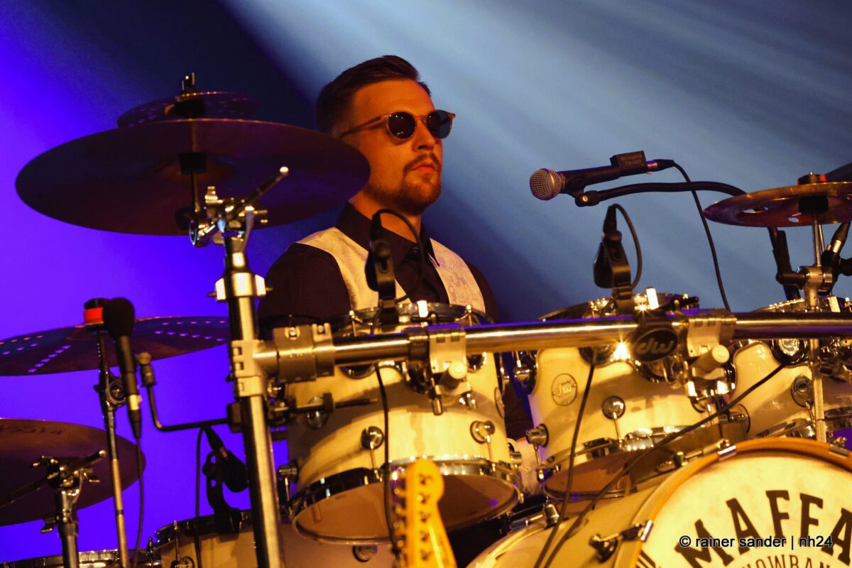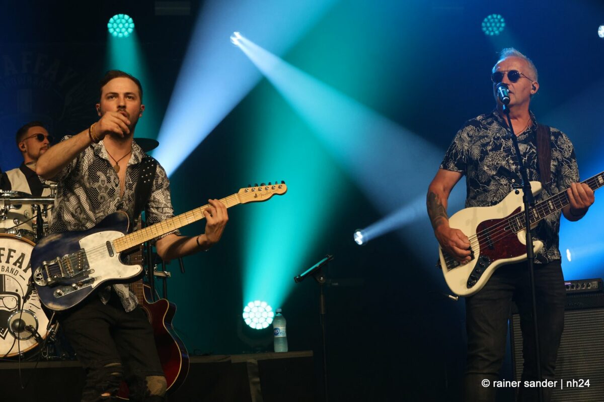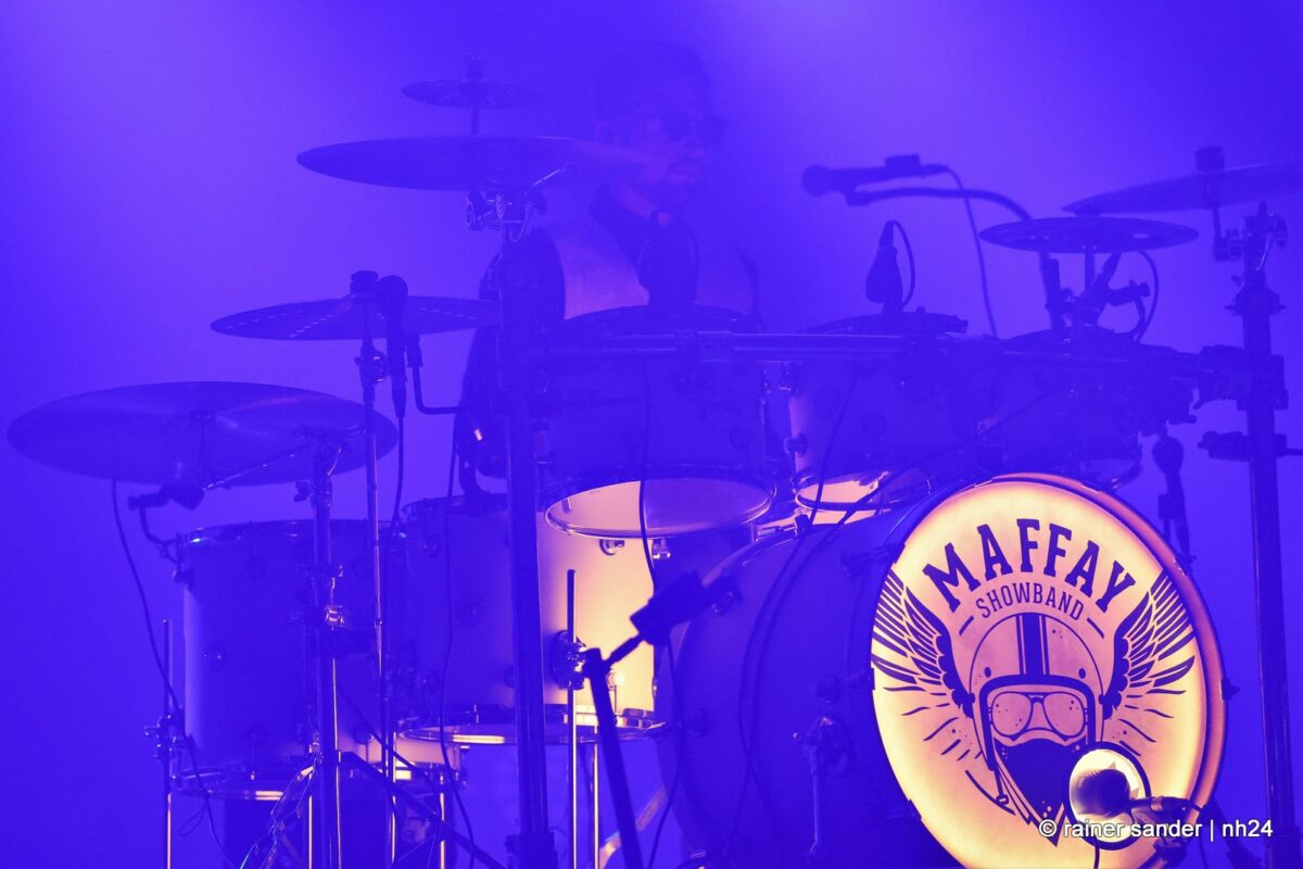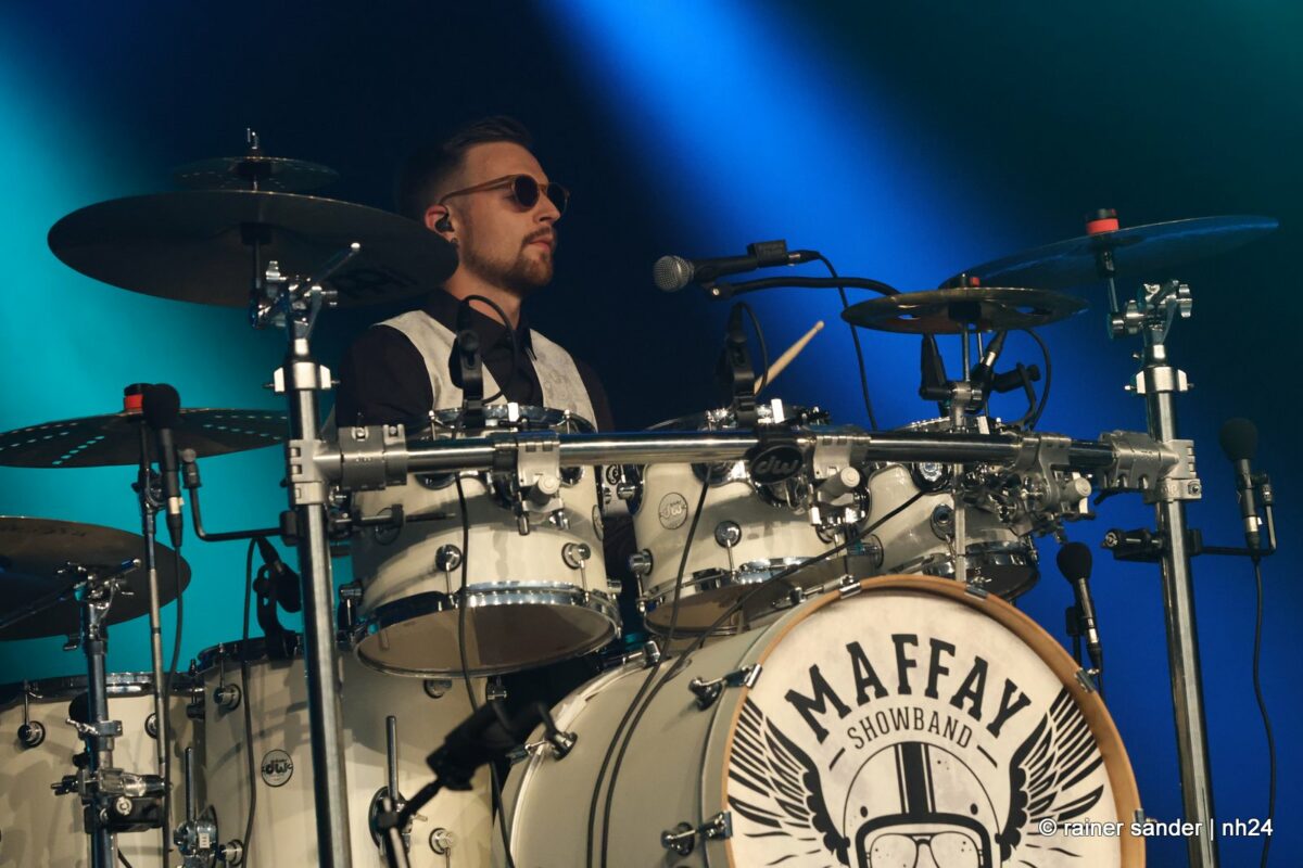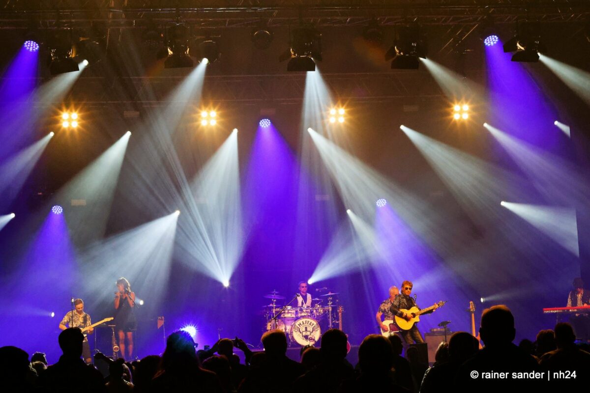 Nach einer Stunde und ein bisschen Partyeinlage mit DJ stand die Maffay-Showband auf der Bühne. Angereist aus der Bergstadt Eibenstock im Erzgebirge, ausgestattet mit bestem Sächsisch und geadelt vom Meister aus Siebenbürgen persönlich, der sogar bereits gemeinsam mit ihnen auf der Bühne gestanden hat, begannen sie wunderbar entspannt und ganz so wie ihr Vorbild mit „Samstag Abend in unserer Straße“ und „Schatten in die Haut tätowiert“. Spätestens „Und es war Sommer“ war der Bann gebrochen.