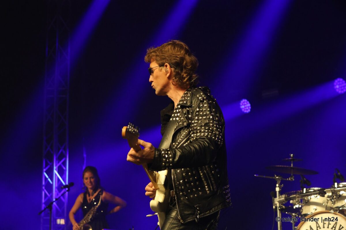 Sänger, Gitarrist und Manager der Band, Steven Gärtner trägt die gleiche Jacke wie Maffay, könnte körperlich aber auf den Peter herabschauen. Es ist immer ein bisschen schwerer, charismatische Musiker zu covern, die einen unverkennbaren Stil haben. Steven Gärtners Stimme klingt dem Original verblüffend ähnlich und die Bühnen-Choreografie stimmt. Die Band hat’s drauf, Saxofonistin Nanett „Charlie“ Klauser hat am Nachmittag noch in Dresden auf einer anderen Bühne gestanden, und alle vor oder auf der Bühne wissen, da singt und spielt nicht Peter Maffay. Aber wenn sich das Original mehr und mehr zurückzieht, ist es schön, wenn jemand da ist, um für Live-Erlebnisse des Maffay-Sounds zu sorgen.