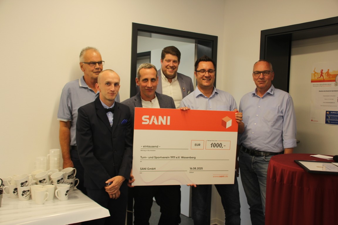 Ein besonderes Zeichen der Verbundenheit setzte die Firma SANI aus Schleswig-Holstein, die die Module geliefert hatte: Ihre Vertreter übergaben dem Verein einen Scheck über 1.000 Euro als Dankeschön für die Zusammenarbeit.