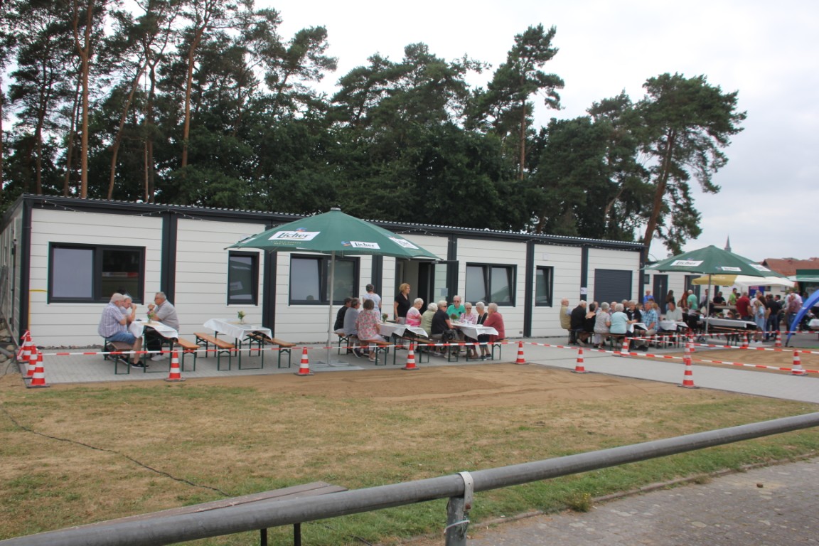 Die Einweihung wurde als Tag der offenen Tür gefeiert. Nach dem offiziellen Festakt am Samstagnachmittag klang der Abend bei Musik von DJ Örns aus. Am Sonntag rundeten ein zünftiger Frühschoppen und die Leimsfelder Dorfmusikanten das Programm ab. Für das leibliche Wohl sorgten Kaffee und Kuchen sowie Bratwurst vom Grill – beste Voraussetzungen also für viele gute Gespräche und fröhliche Stunden im neuen Vereinsheim.