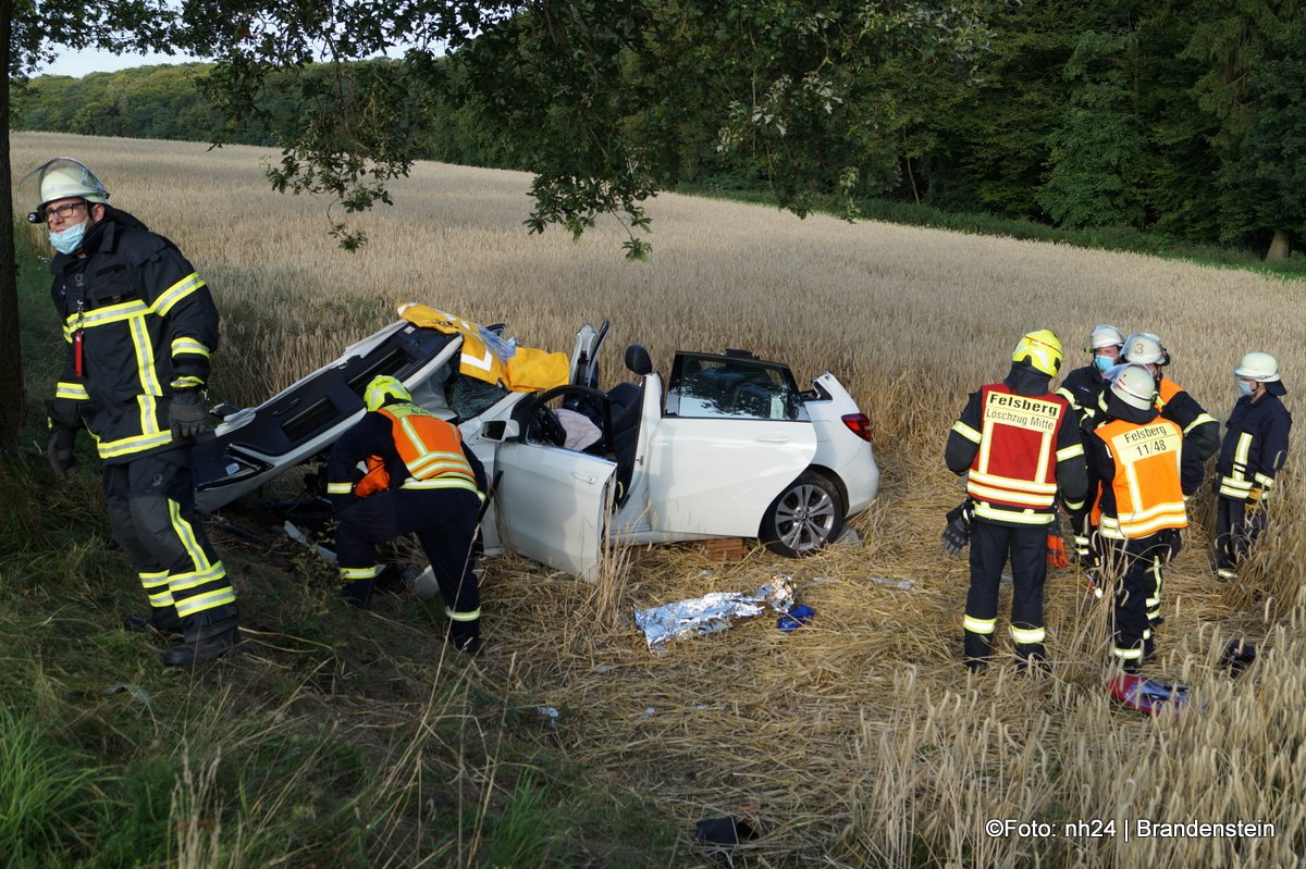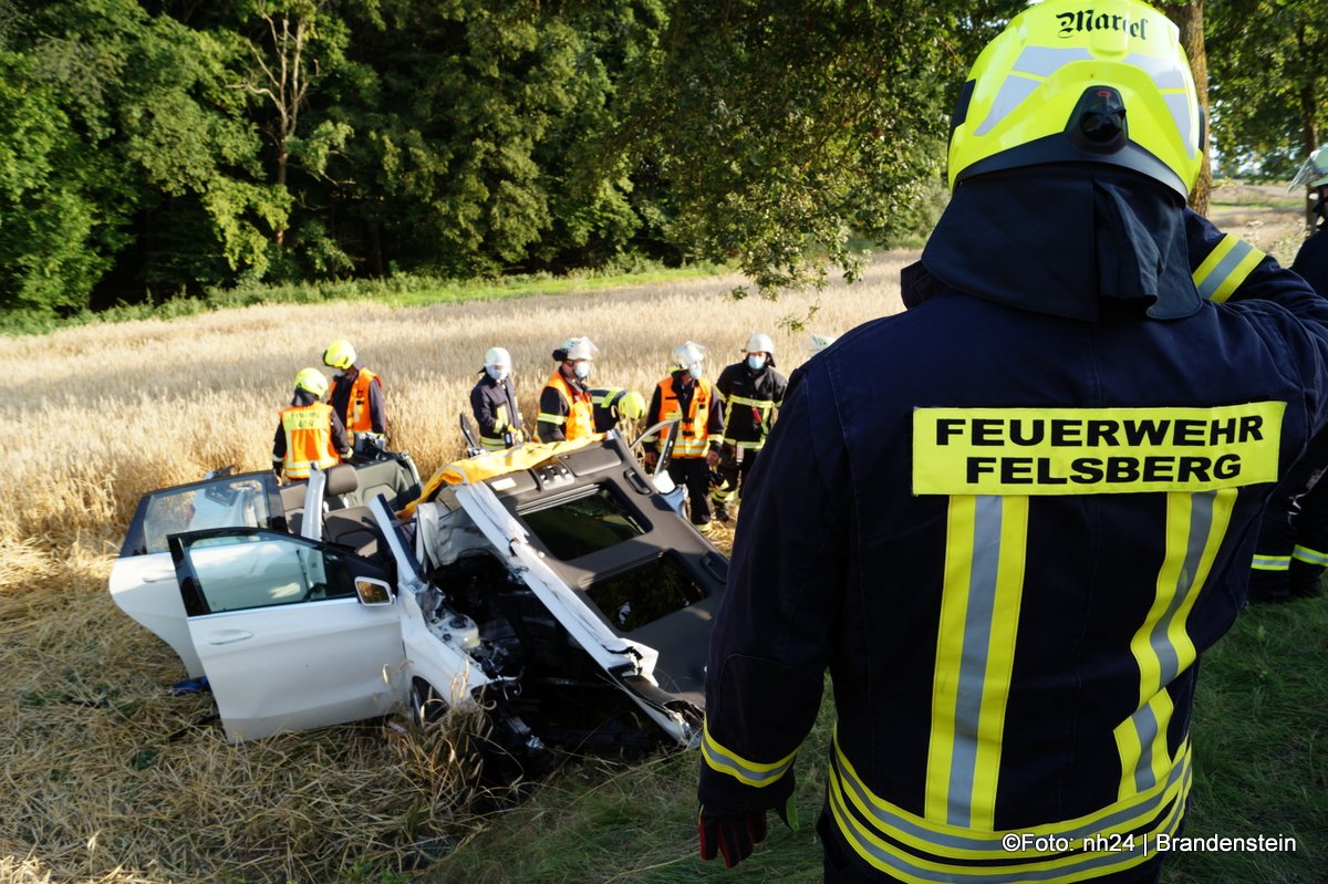 Eine 67 Jahre alte Frau aus Wabern geriet aus bislang unbekannter Ursache gegen 18 Uhr von der Fahrbahn ab, prallte mit ihrem Mercedes gegen einen Baum und schleuderte in ein Feld. Ersthelfer hielten sofort an, kümmerten sich um die Verletzte und verständigten die Rettungskräfte.