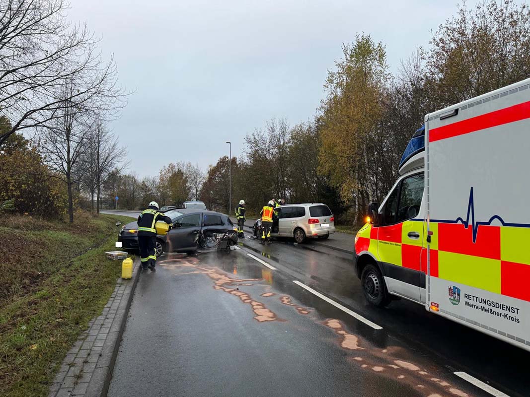 HESSISCH LICHTENAU. Bei einem Unfall in Hessisch Lichtenau im Werra-Meißner-Kreis sind am Montagmorgen zwei Personen leicht verletzt worden. Der Gesamtschaden an den vier beteiligten Fahrzeugen wird auf etwa 45.000 Euro geschätzt, wie ein Sprecher der Eschweger Polizei am Dienstag mitteilte.