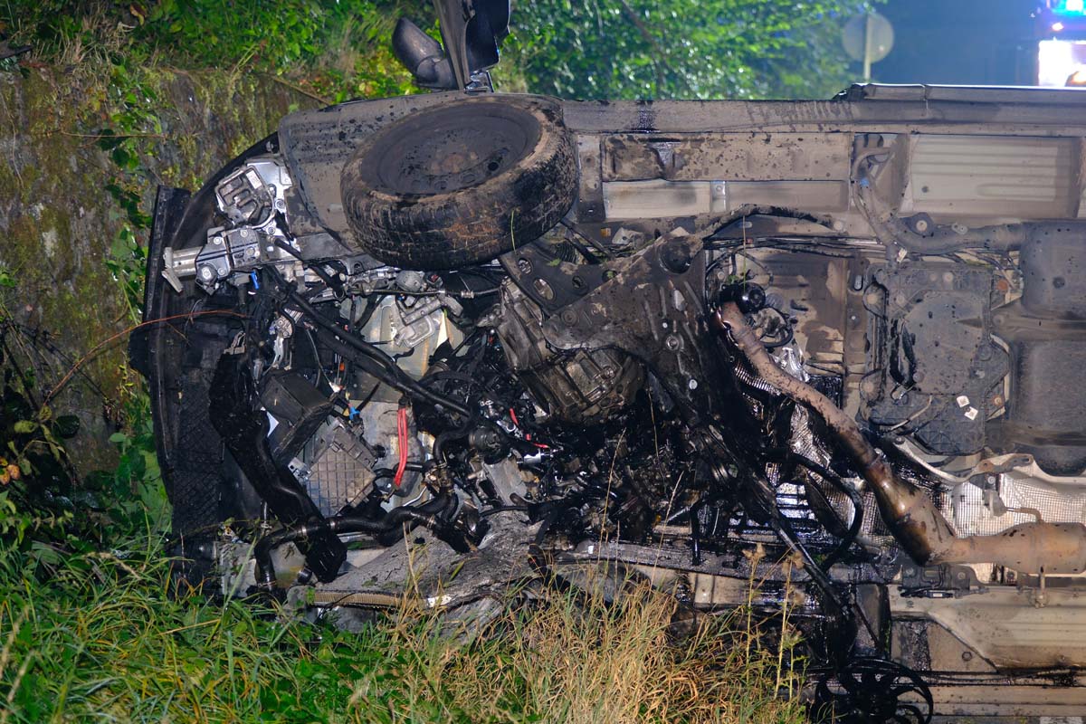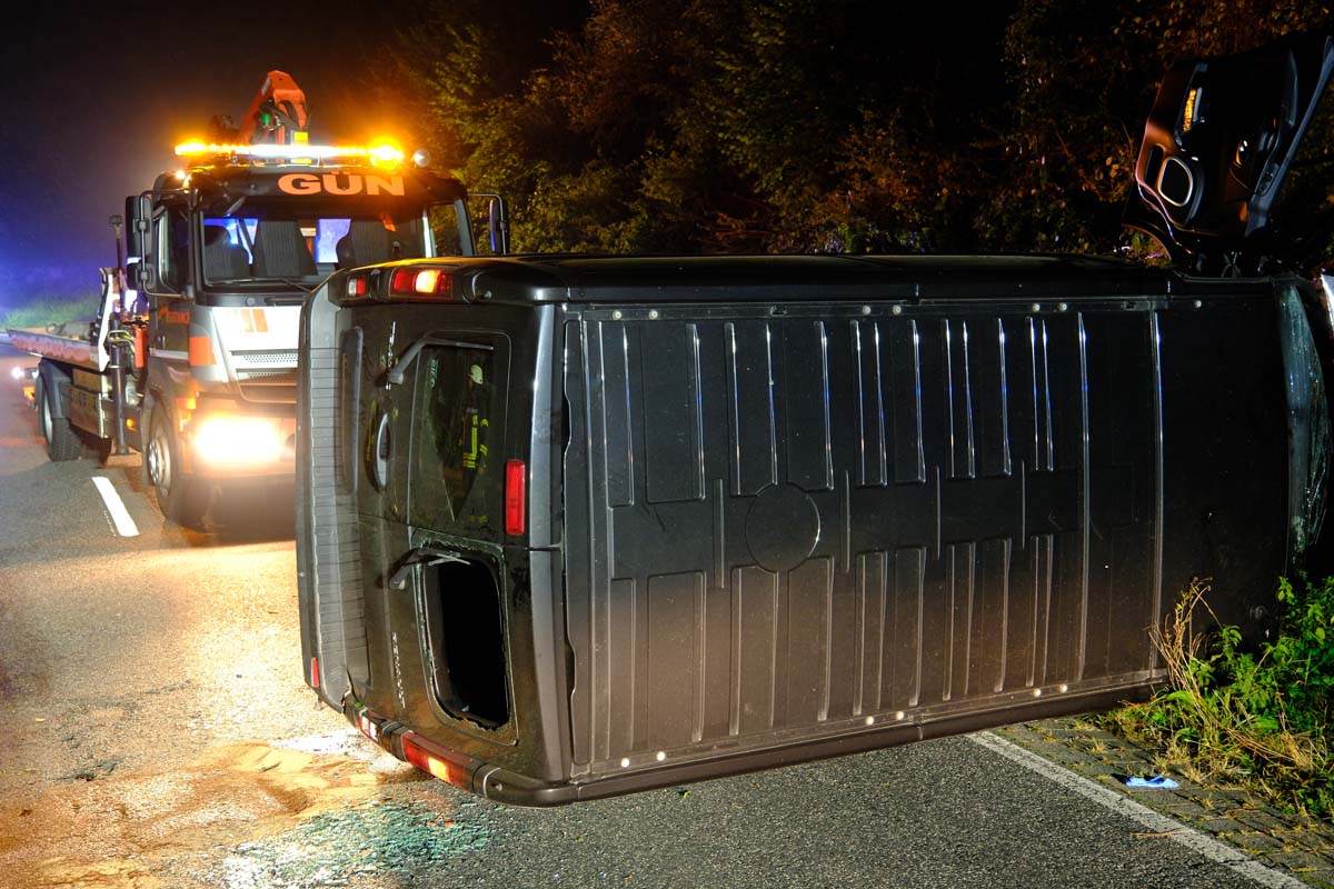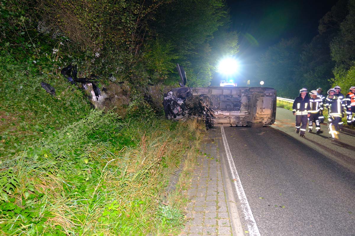 Der 31-jährige Fahrer fuhr von Knüllwald-Völkershain in Richtung Knüllwald-Wallenstein. An einer Rechtskurve am Ortseingang von Wallenstein fuhr er geradeaus über eine Einbuchtung der Landesstraße durch Geäst einen Abhang hinauf und prallte schließlich mit der Beifahrerseite gegen eine Stützmauer. Der Aufprall war so stark, dass die rechte vordere Fahrzeugseite herausgerissen wurde. Der Kleinbus kippte daraufhin am Hang auf die Beifahrerseite.