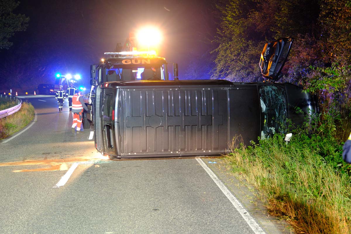 Unter der Leitung von Markus Günther, dem stellvertretenden Gemeindebrandinspektor von Knüllwald, sicherten die Einsatzkräfte die Unfallstelle ab, leuchteten sie aus und beseitigten ausgelaufene Betriebsmittel. Die Landesstraße war für etwa eineinhalb Stunden voll gesperrt, bis die Bergungsmaßnahmen abgeschlossen waren. Der Kleinbus erlitt einen Totalschaden.