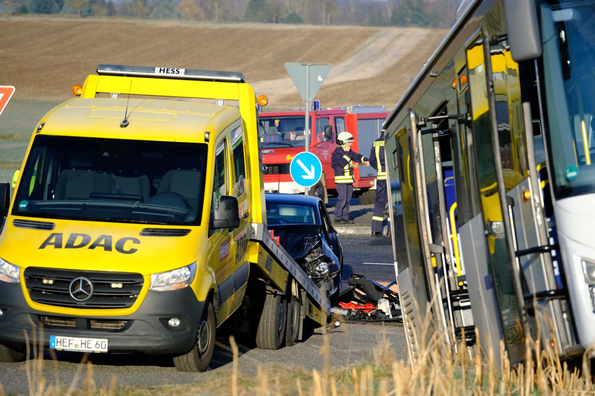 MALSFELD. Bei einem Unfall auf der Landesstraße zwischen Homberg und Melsungen (Schwalm-Eder-Kreis) ist am Donnerstagmorgen eine Pkw-Fahrerin (32) aus Kassel schwer, keinesfalls lebensbedrohlich verletzt worden. Ihr hatte ein 63 Jahre alter Mann aus Kassel die Vorfahrt genommen, in dessen Linienbus sich 25 Schulkinder und sieben Erwachsene umliegender Ortschaften befanden.