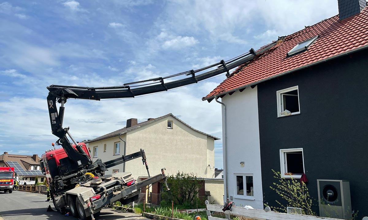 FRITZLAR. In der „Oberen Ostenbachstraße“ in Fritzlar-Ungedanken ist am Montagvormittag das Dach eines Wohnhauses durch den Kran eines Lkw beschädigt worden. Verletzt wurde niemand. Erst im April des zurückliegenden Jahres hatte der Dachstuhl des Hauses gebrannt – wir berichteten.