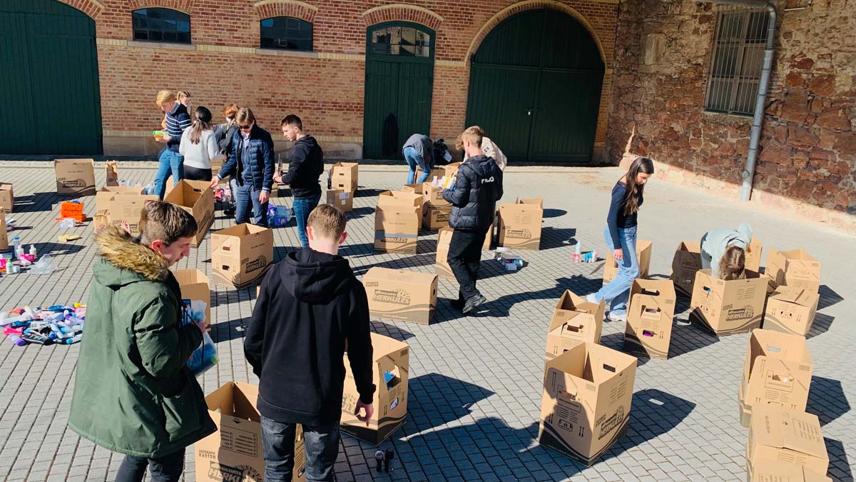 Zum Abschluss gestalteten die Klassen für die Kisten kleine Grußbotschaften, die sie sogar ins Ukrainische übersetzten. Hinzu kamen noch einige Kuscheltiere und kleine symbolische Geschenke für Kinder. Auf dem Campus-Gelände wurde am Freitagmorgen alles thematisch sortiert, sodass die einzelnen Hygieneartikel vor Ort schnell verteilt werden können. Im Anschluss erfolgte die Spendenübergabe an den Gudensberger Partnerschaftsverein.