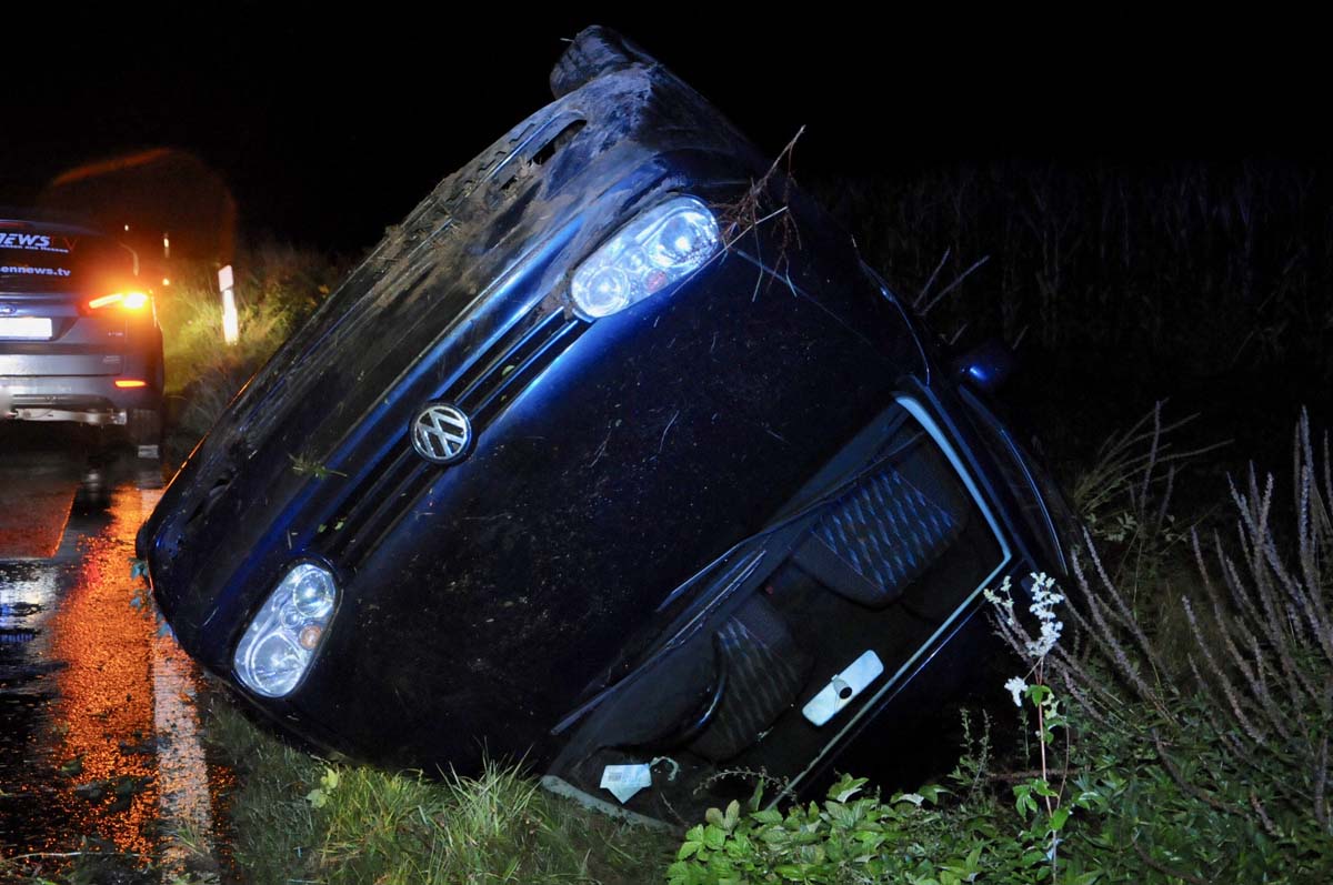 Mit nicht angepasster Geschwindigkeit war am späten Mittwochabend ein 40 Jahre alter Mann aus Naumburg auf der regennassen Fahrbahn zwischen Fritzlar-Lohne und Züschen unterwegs. Am Ausgang einer Rechtskurve geriet der Pkw ins Schleudern, von der Fahrbahn ab und überschlug sich mehrfach. Der 40 Jahre alter Autofahrer wurde vom Rettungsdienst in das nahe Hospital gebracht. Er erlitt leichte Verletzungen. An dem Pkw entstand wirtschaftlicher Totalschaden in Höhe von 3.000 EUR. Vor Ort waren ein Rettungs- und ein Notarztteam sowie eine Streifenwagenbesatzung der Polizeistation Fritzlar (wal)