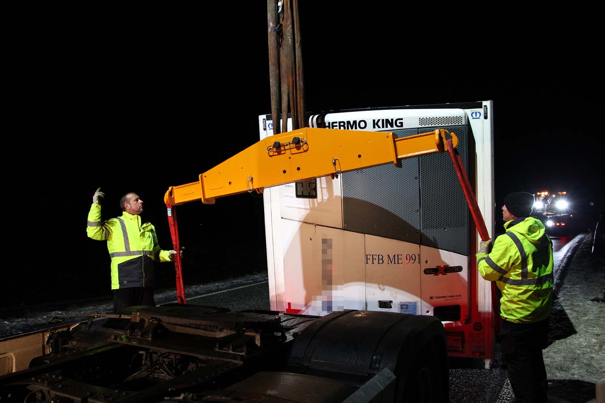 Zunächst mussten die beim Abriss des Aufliegers getrennten Versorgungsleitungen an der Sattelzugmaschine vom Unternehmen Ludwig instandgesetzt werden. Mit der Hilfe des Autokrans wurde der Auflieger wieder auf die Sattelzugmaschine gehoben und anschließend zur Schwalmstädter Spedition transportiert.