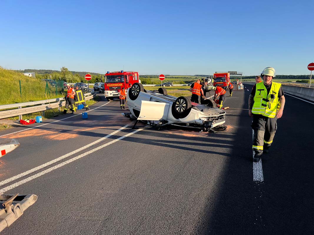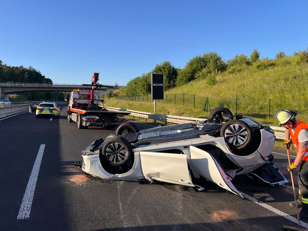 Am Freitag gegen 18:30 Uhr überschlug sich ein Pkw auf der Nordfahrbahn der A 49 in Höhe der Anschlussstelle Schwalmstadt. Die Feuerwehr Treysa, der Rettungsdienst des DRK mit Rettungswagen und Notarzteinsatzfahrzeug sowie die Polizeiautobahnstation Baunatal waren im Einsatz. Die Autobahn wurde für die Bergung des auf dem Dach liegenden Fahrzeugs voll gesperrt.
