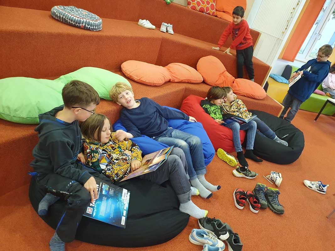 Lehrkräfte hatten dafür fünf Mitmach-Stationen vorbereitet: In Biologie konnten die Gäste unter dem Motto „Wunderwelt Biologie – Schauen und staunen“ experimentieren. Musikalisch wurde es bei „Bühne frei für kleine Musiker – Für jedes Böhnchen ein Tönchen“. Im Bereich „Genial digital“ gestalteten die Kinder am Tablet kreative Zeichnungen. Außerdem konnten sie in der Schulbücherei beim „Schmökerplatz“ Rätsel lösen und beim Angebot „Küchen-Brotgesichter“ ein gesundes Frühstück zubereiten. Unterstützt wurden die Lehrkräfte dabei von Schülerinnen und Schülern der Klasse 6a sowie Fachkräften aus dem schulischen Gesundheits- und Unterstützungsbereich.