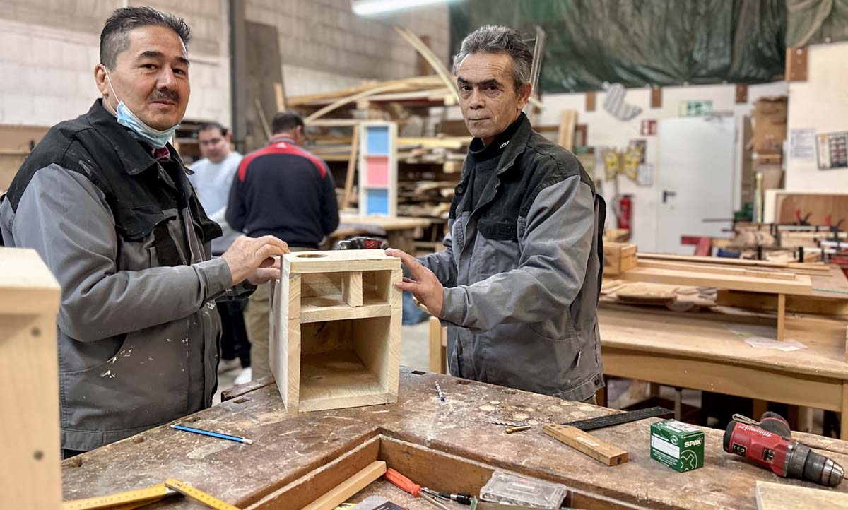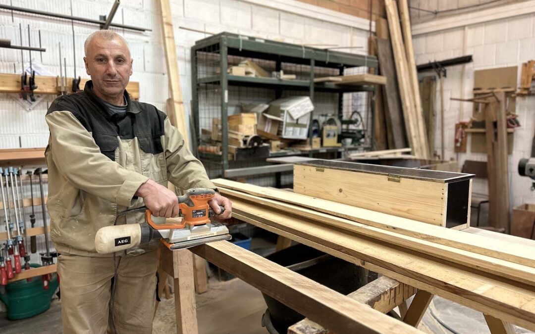 In der AGH in Fritzlar arbeiten bis zu 24 Menschen in den Bereichen Holz, Metall und Farbe: Ein Drittel von ihnen sind Geflüchtete, die auf einen Sprachkurs warten, die anderen Teilnehmenden kommen aus dem Raum Fritzlar und werden ebenfalls über das Jobcenter vermittelt. Ihr Ziel sind eine Berufsorientierung und eine mögliche Integration auf dem Arbeitsmarkt, erklärt Gunter Jung.