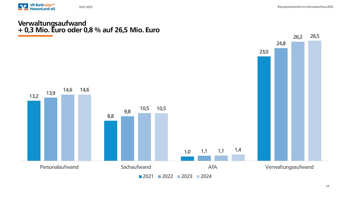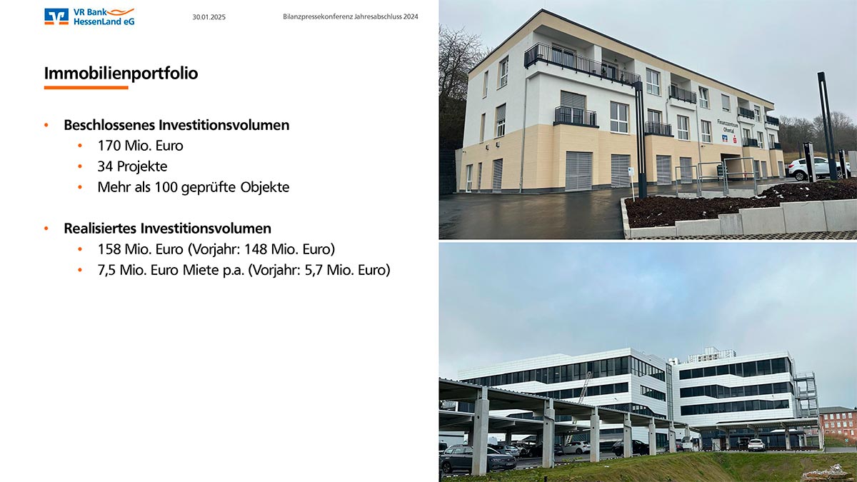 Das Immobilienportfolio umfasst 34 Projekte mit jährlichen Miet- und Pachteinnahmen von 7,5 Mio. Euro. Das Zins- und Provisionsergebnis blieb mit 46 Mio. Euro stabil, während die Verwaltungsaufwendungen leicht um 0,3 Mio. Euro stiegen.