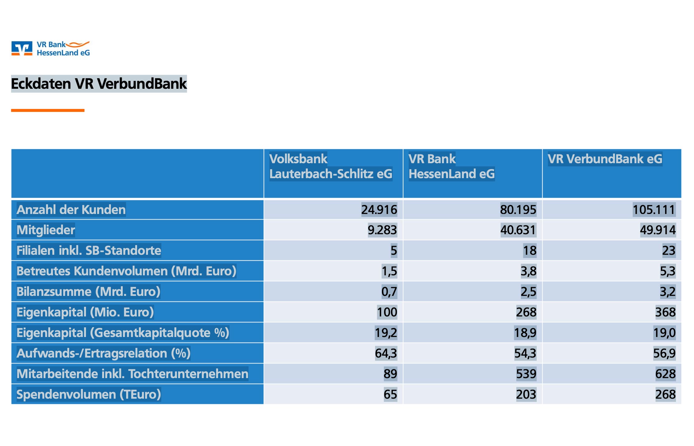 Die neue VerbundBank eG soll künftig unter den Marken VR VerbundBank eG HessenLand und VR VerbundBank eG Lauterbach-Schlitz auftreten.