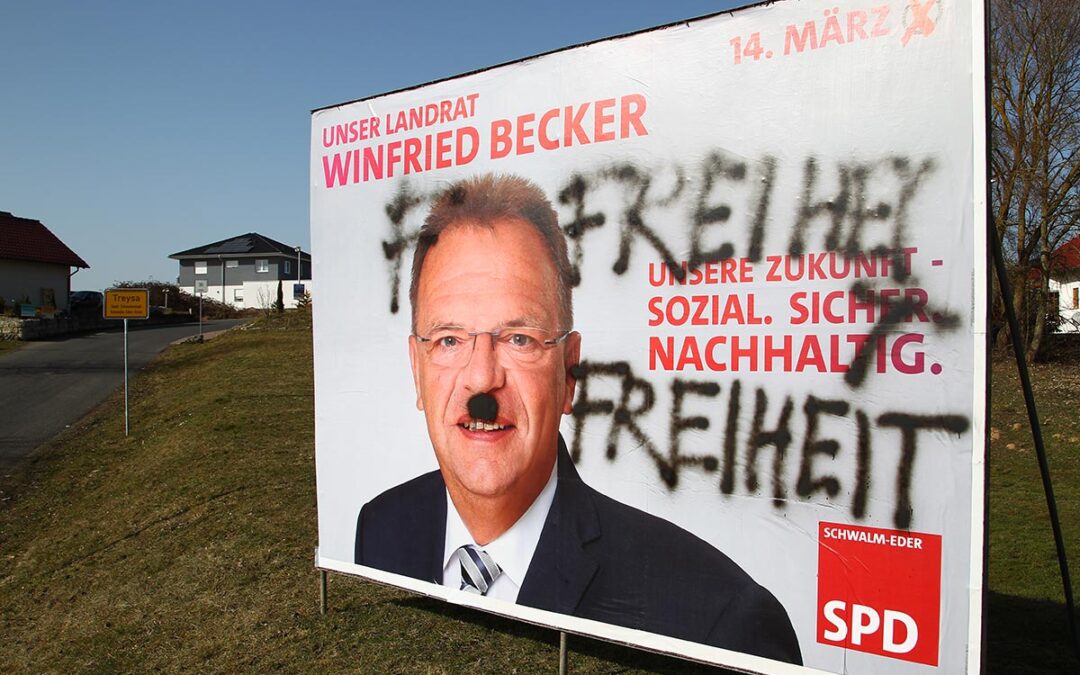 TREYSA. In der Schwalm sind mindestens zwei Wahlplakate des amtierenden und bei der kommenden Landratswahl erneut kandidierenden SPD-Mitglieds Winfried Becker beschmiert worden. Möglicherweise besteht zudem der Verdacht, neben der offensichtlichen Sachbeschädigung, des Verwendens von verfassungsfeindlichen Symbolen.