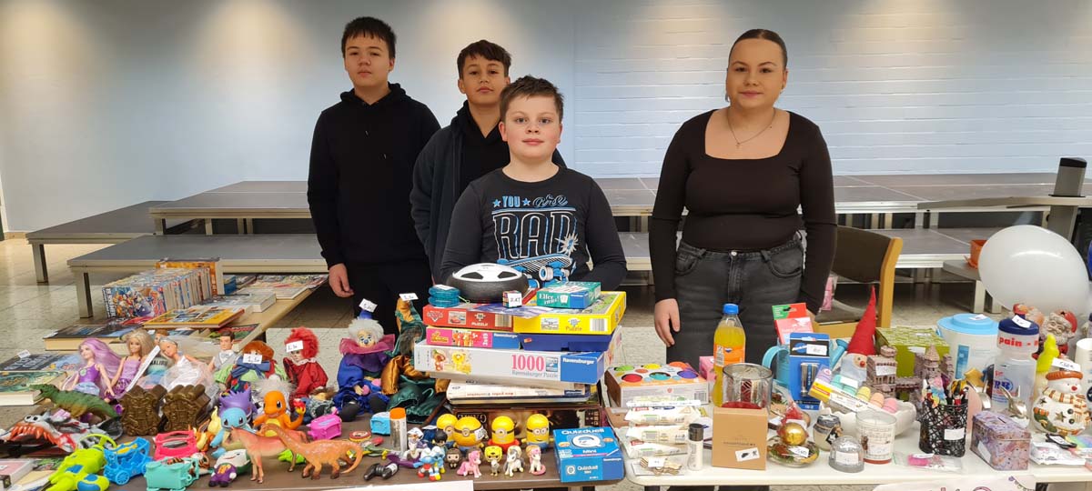 Nicht weniger zu tun hatten die Mädchen und Jungen der Flohmarktgruppe unter der Leitung von Larissa Emde und Vanessa Weckesser. In Windeseile gingen die Waren hier über den Tisch – vor allem die Kuscheltiere waren der Renner. Ihr Erlös geht an die Tiernothilfe.