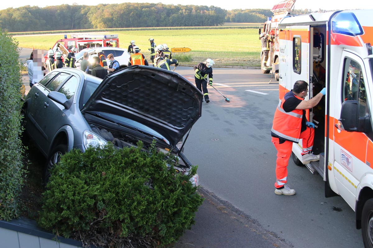 Ein 39-Jähriger aus Frielendorf kam mit seinem weißen Pkw von Verna und wollte die Dillicher Straße in Richtung Vernaer Straße geradeaus überqueren, wobei er von der tief stehenden Sonne geblendet wurde. Dabei übersah er den Pkw einer 70 Jahre alten Frau aus Frielendorf, die von Dillich kommend in Richtung Frielendorf fuhr. Die beiden Fahrzeuge prallten im Kreuzungsbereich zusammen. Die 70-Jährige überfuhr den Gehweg der Dillicher Straße, beschädigte ein Verkehrsschild und kam auf einer Grünfläche neben der Fahrbahn zum Stillstand. Der Pkw des 39-Jährigen blieb im Kreuzungsbereich stehen.