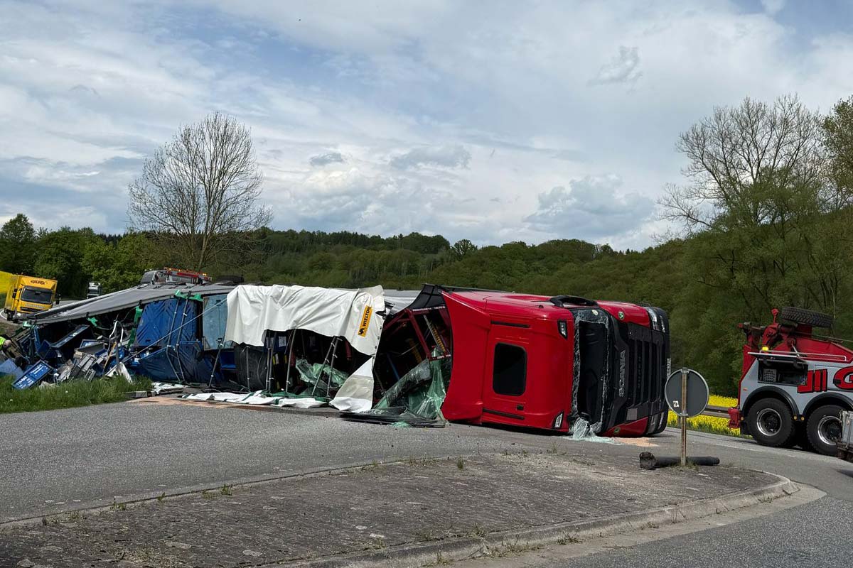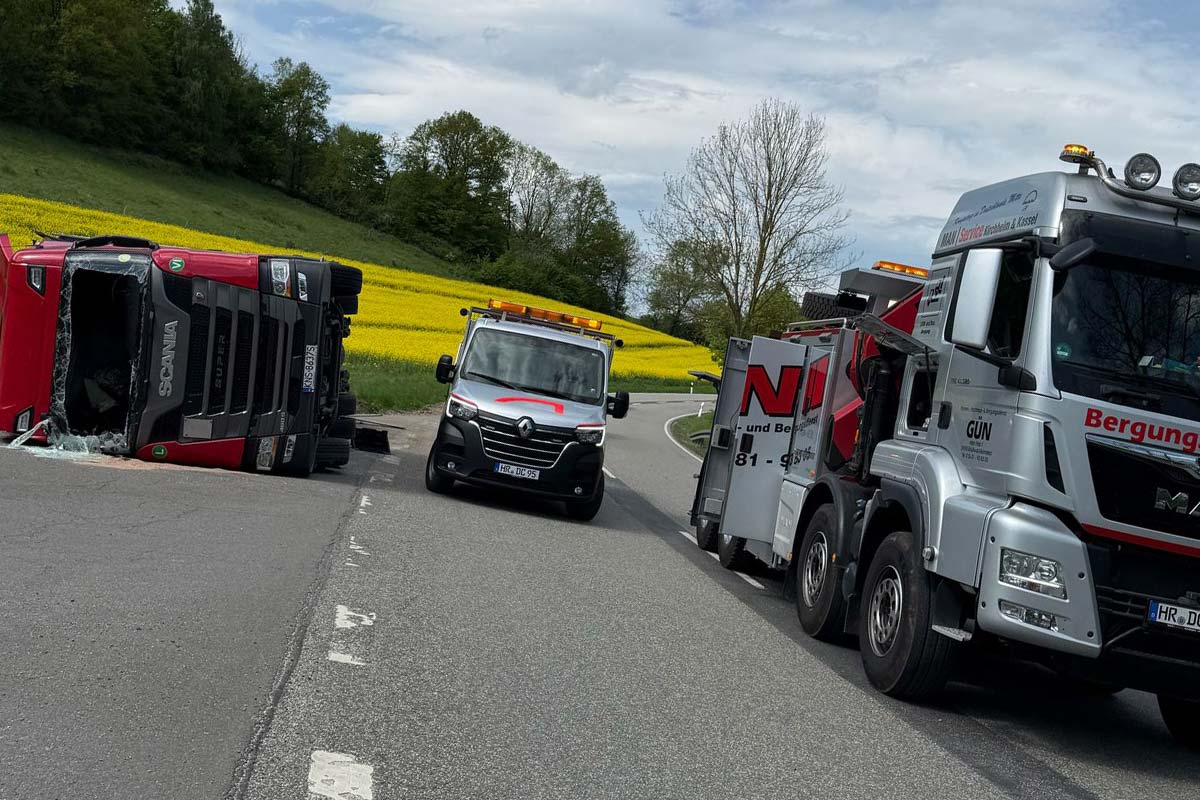 Die B 400 wurde im Bereich der Unfallstelle in beide Richtungen voll gesperrt. Eine Umleitung wurde eingerichtet. Nach Angaben der Polizei ist mit Verkehrsbehinderungen bis in die Abendstunden zu rechnen. Ein spezieller Abschleppdienst aus dem Schwalm-Eder-Kreis wurde mit der Bergung des havarierten Sattelzugs beauftragt. Neben der Polizei waren auch Feuerwehr, Rettungsdienst und die Straßenmeisterei im Einsatz. Der entstandene Sachschaden wird nach ersten Schätzungen auf einen Betrag im niedrigen bis mittleren fünfstelligen Bereich beziffert. Die Polizei bleibt weiterhin vor Ort, um die Bergungs- und Verkehrsmaßnahmen zu koordinieren. (wal)