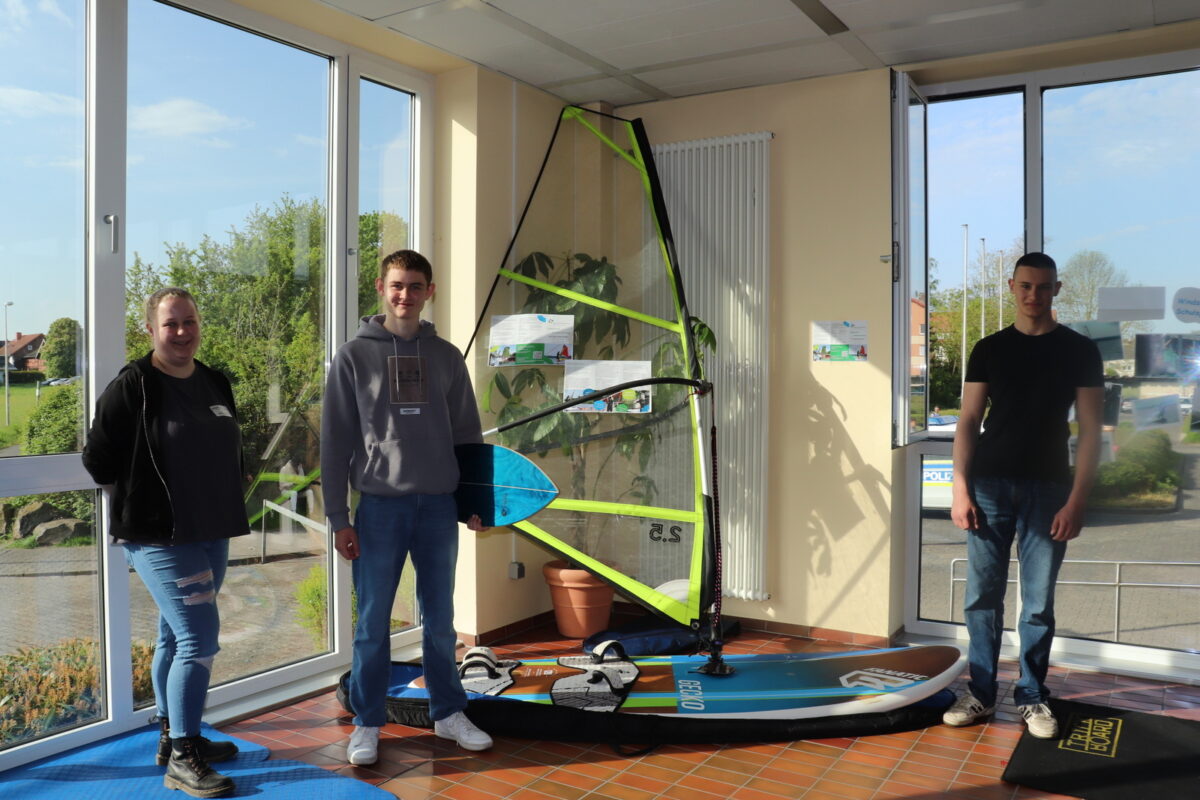 Lehrkräfte sowie Fachoberschülerinnen und Fachoberschüler stellten das Sportangebot mit Surfen, Ski- und Snowboard fahren vor.