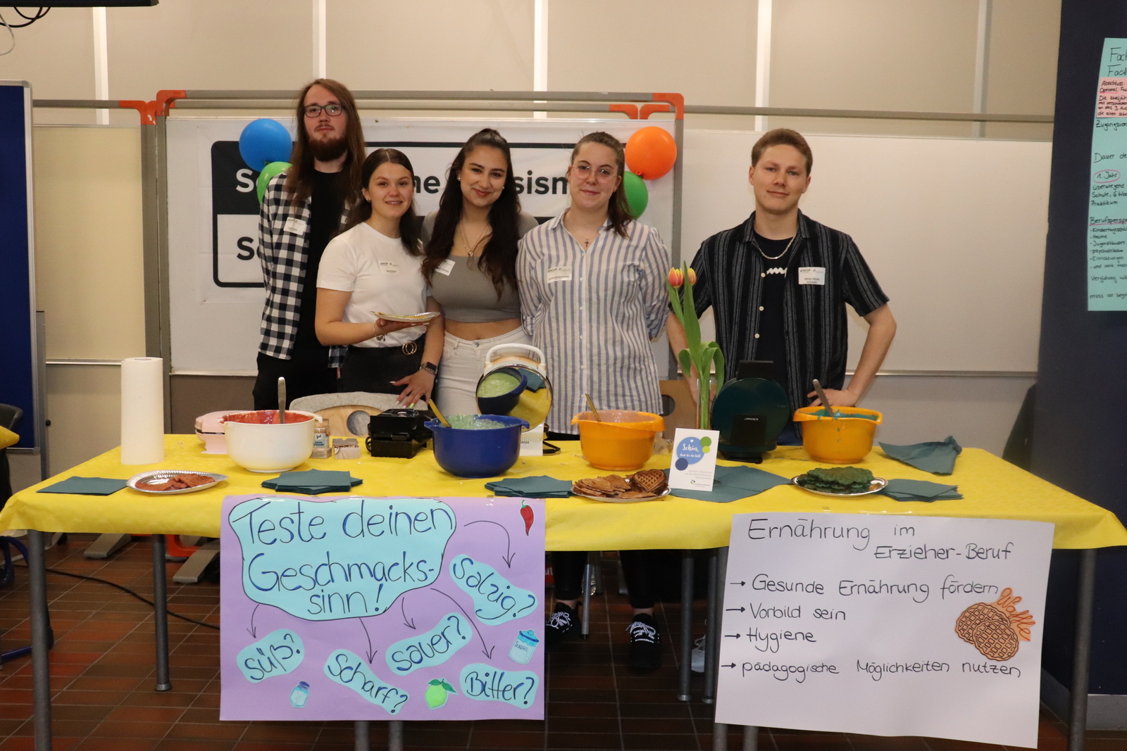 An verschiedenen Ständen informierten sich die Besucherinnen und Besucher zusätzlich über die schulische Bildung in der Fachoberschule in den Schwerpunkten Technik, Informationstechnik und Wirtschaft/Verwaltung sowie in der Berufsfachschule mit Übergang zur Ausbildung (BÜA) in den Schwerpunkten Ernährung/Gastronomie, Metalltechnik, Elektrotechnik sowie Wirtschaft/Verwaltung.