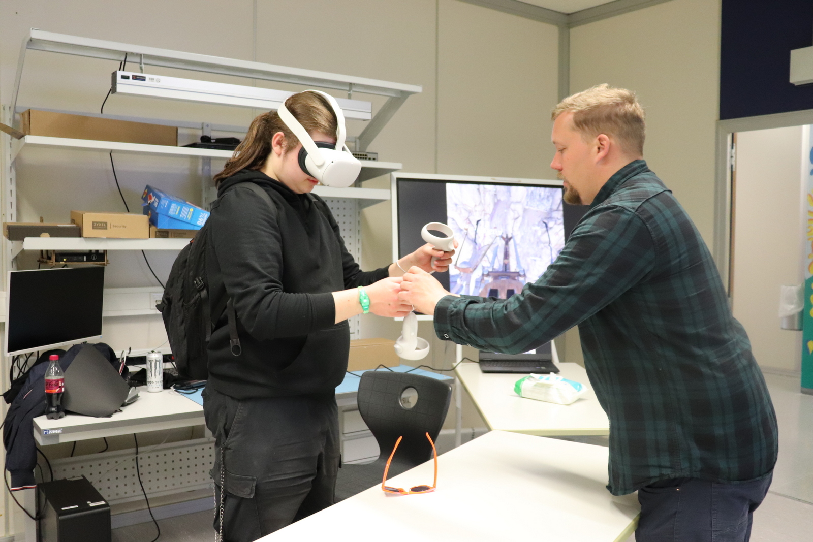Wer wollte, konnte sich u.a. über die Ausbildung zum Fachinformatiker/in, Erzieher/in, Geomatiker/in, Kaufmann/Kauffrau für Büromanagement, Kaufmann/Kauffrau im Einzelhandel, Bäckereifachverkäufer/in und viele mehr informieren. Daneben war beispielsweise die Agentur für Arbeit vertreten und gab Auskunft zu Fragen zur Studienwahl oder Bewerbung. Besonders bei den ausstellenden Handwerksberufen konnte unter Anleitung selbst Hand angelegt werden. Am Stand der Dachdecker-Innung konnte man seine Geschicklichkeit unter Beweis stellen und aus einem Stück Schiefer ein Herz schlagen oder mit einer VR-Brille direkten Einblick in den Beruf bekommen. Großen Anklang fand auch das Angebot der Friseurinnung mit Tipps vom Profi zum richtigen Make up und zur richtigen Frisur, um sich auf dem Bewerbungsfoto und im Vorstellungsgespräch gut zu präsentieren. Regen Zuspruch fand wie jedes Jahr das Info-Mobil der Bundeswehr. Ebenso konnte erlebt werden wie ein Rettungswagen (RTW) ausgestattet ist und welche Untersuchungsmöglichkeiten im Ernstfall zur Verfügung stehen. Das DRK Schwalm-Eder und der DRK Rettungsdienst Mittelhessen waren mit zwei RTW und Fachkräften vor Ort, um u.a. für den Beruf des Rettungssanitäters zu werben.