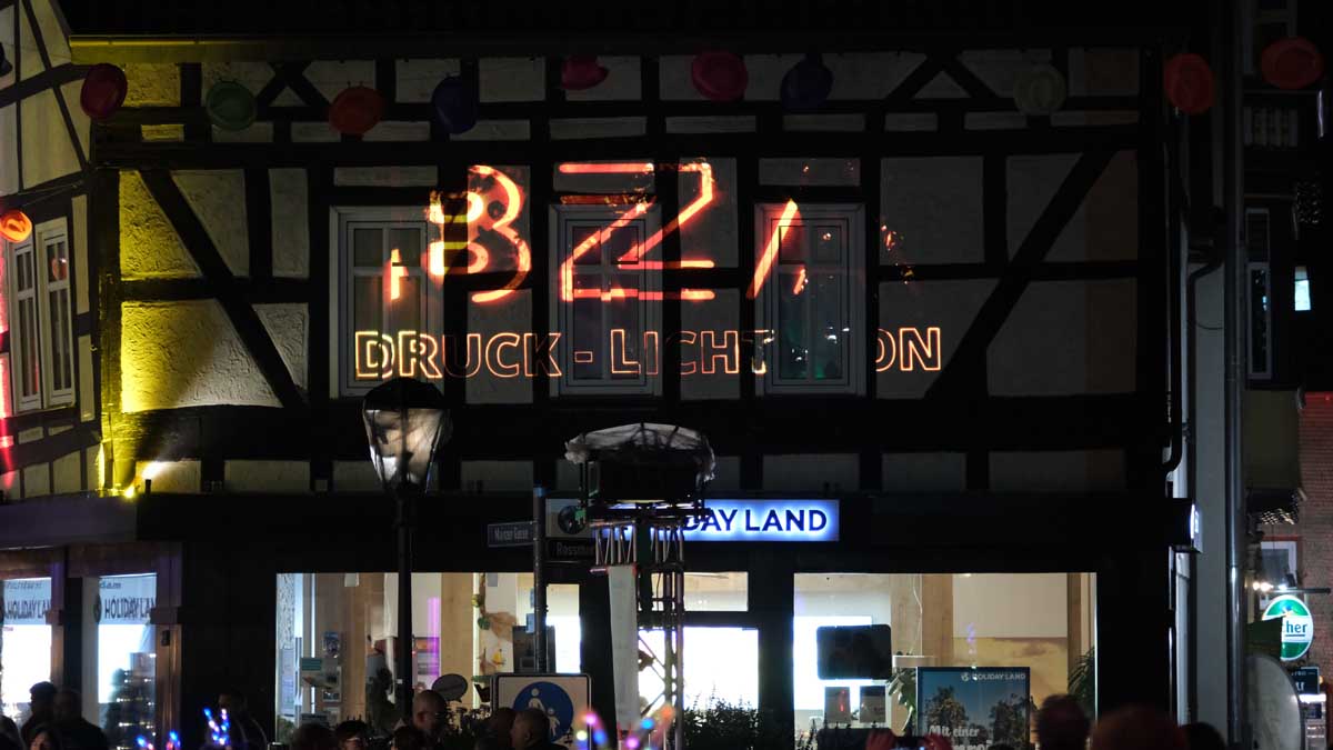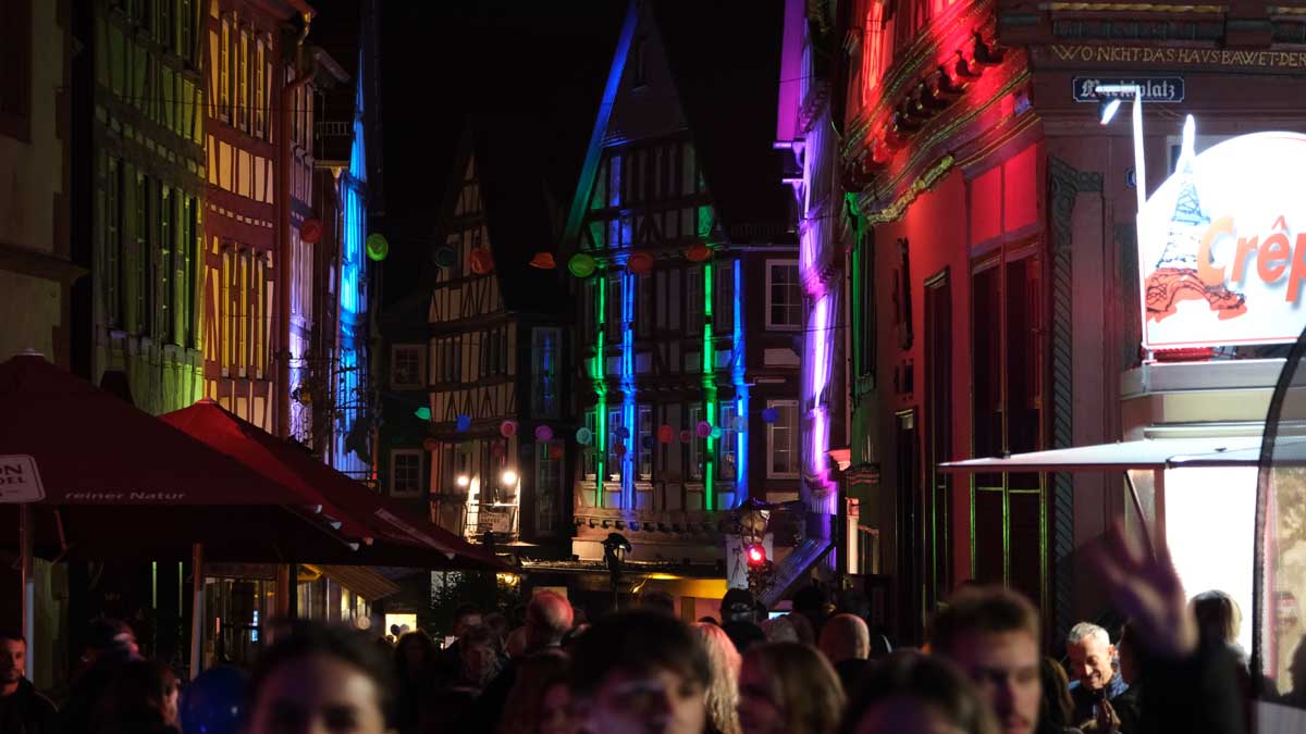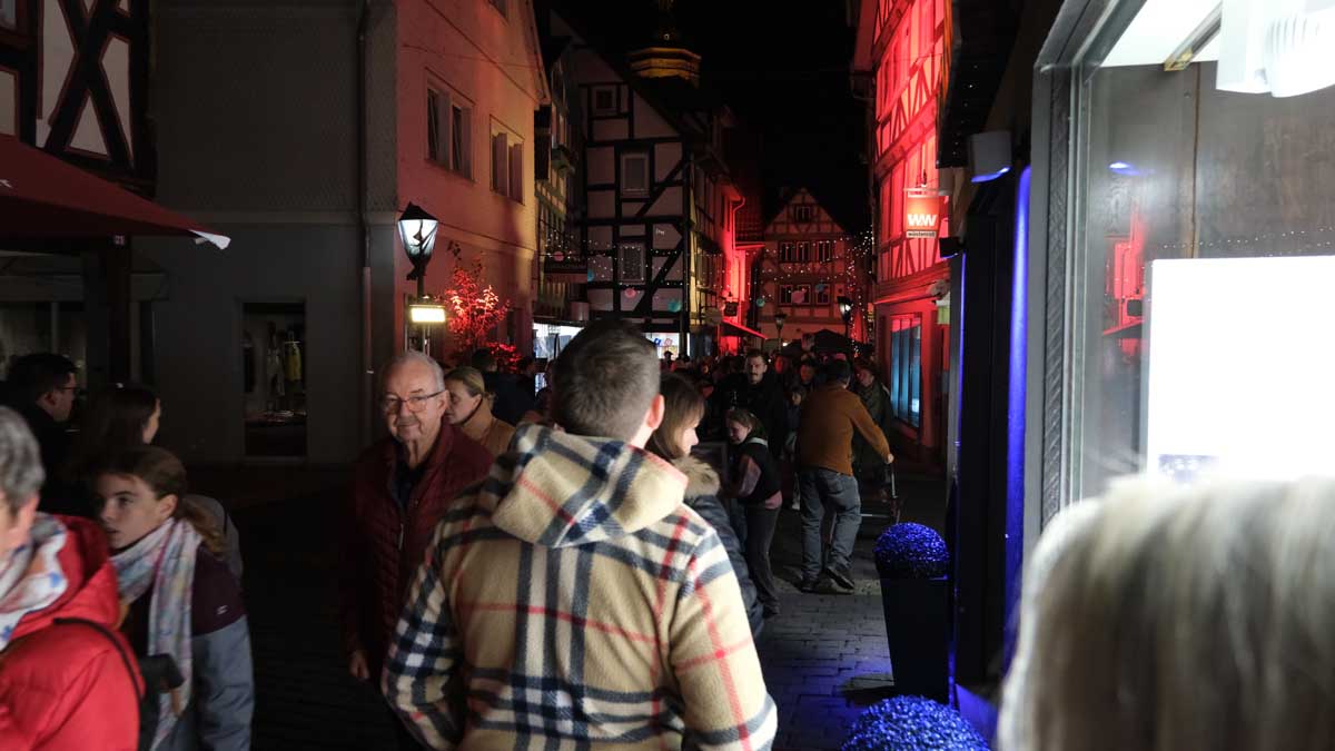 Die Fußgängerzonen rund um den Markrtplatz erstrahlten in einem besonderen Lichtermeer: Viele Leuchtkörper tauchten Fassaden und Objekte in stimmungsvolles Licht. In den Geschäften sorgten verlängerte Öffnungszeiten bis Mitternacht und kreative Aktionen für regen Betrieb, während Gastronomiestände kulinarische Vielfalt boten.