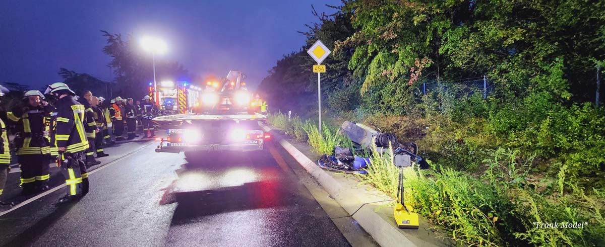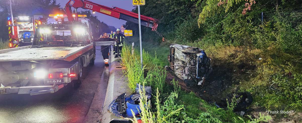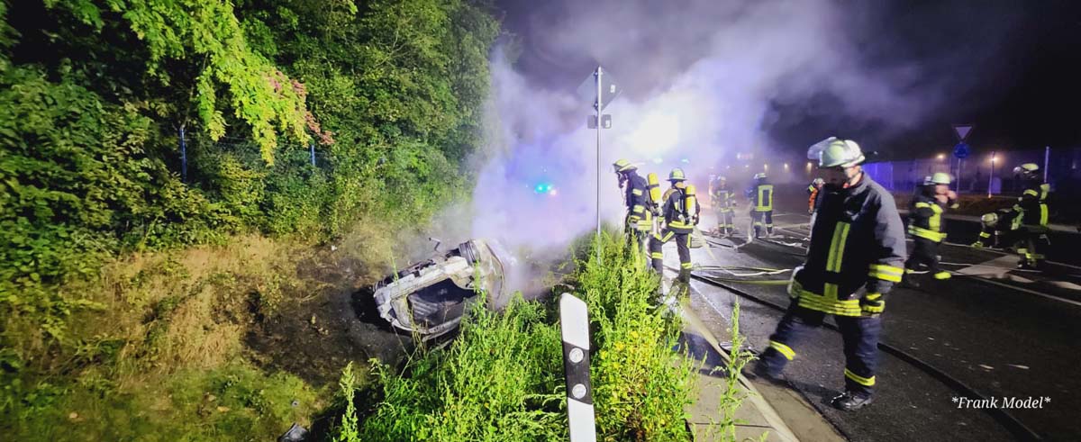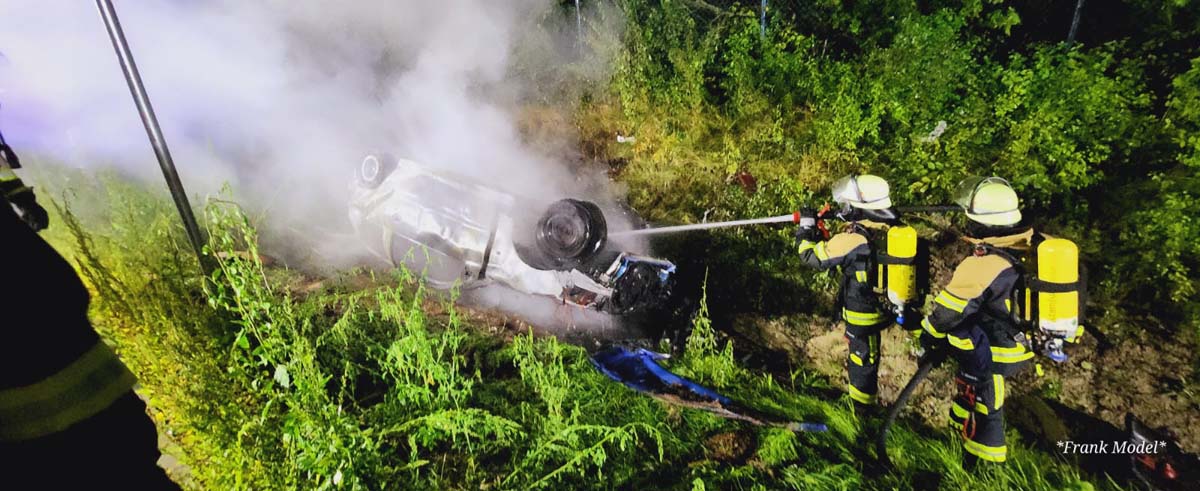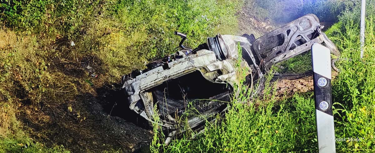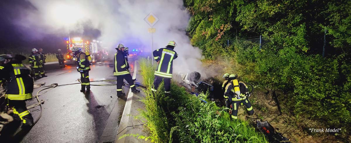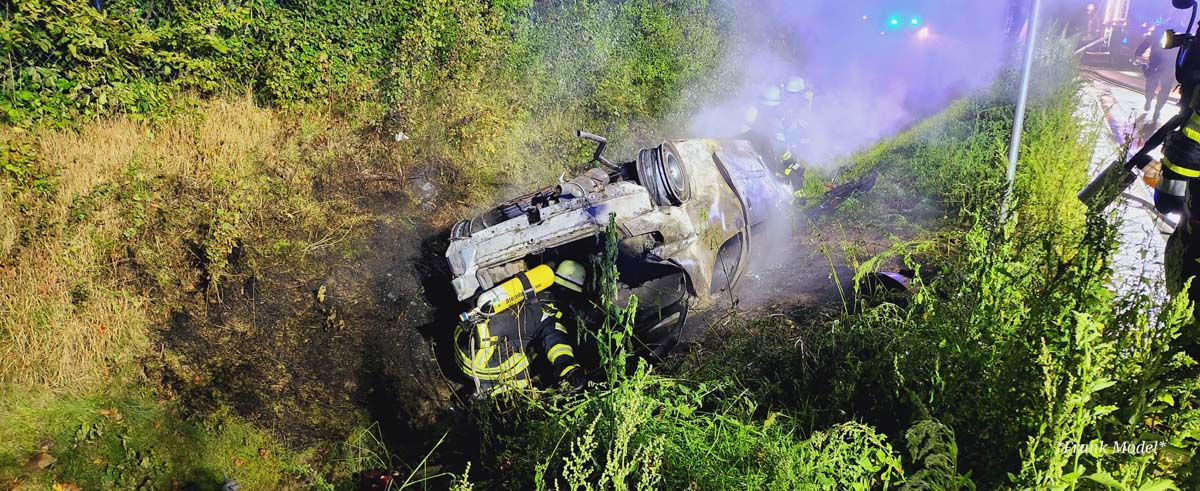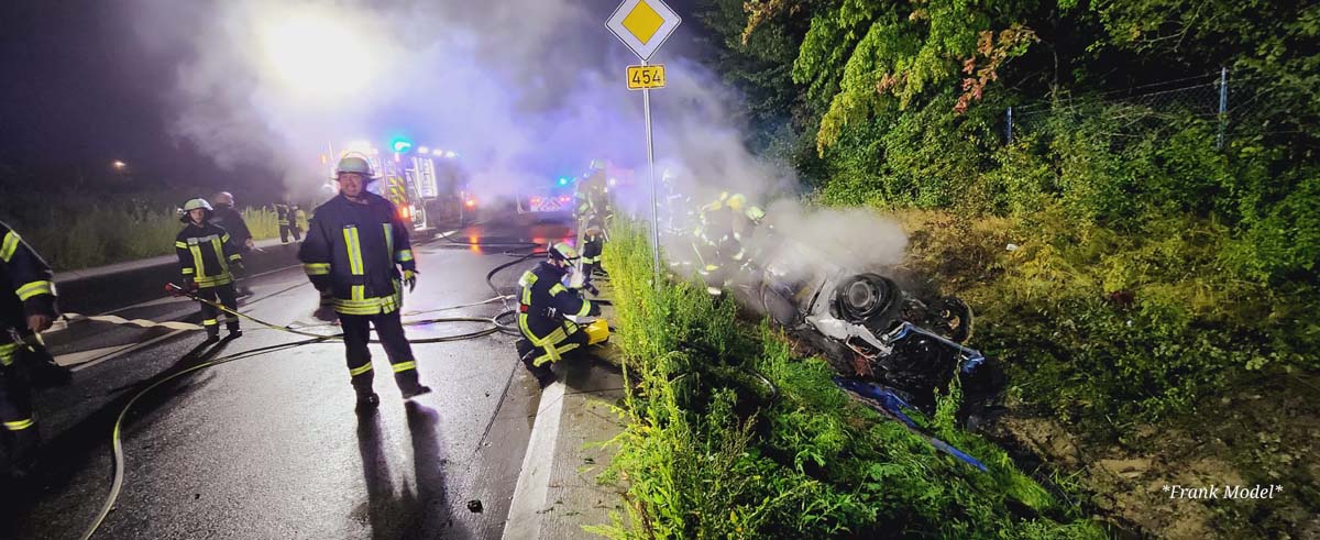Die Bundesstraße war während der Rettungsmaßnahmen, den Löscharbeiten und der anschließenden Bergung des ausgebrannten Pkw zwischen der Ampelkreuzung und dem Kreisel voll gesperrt. Die Höhe des Gesamtschadens ist noch ungewiss. An dem Pkw entstand wirtschaftlicher Totalschaden (wal)