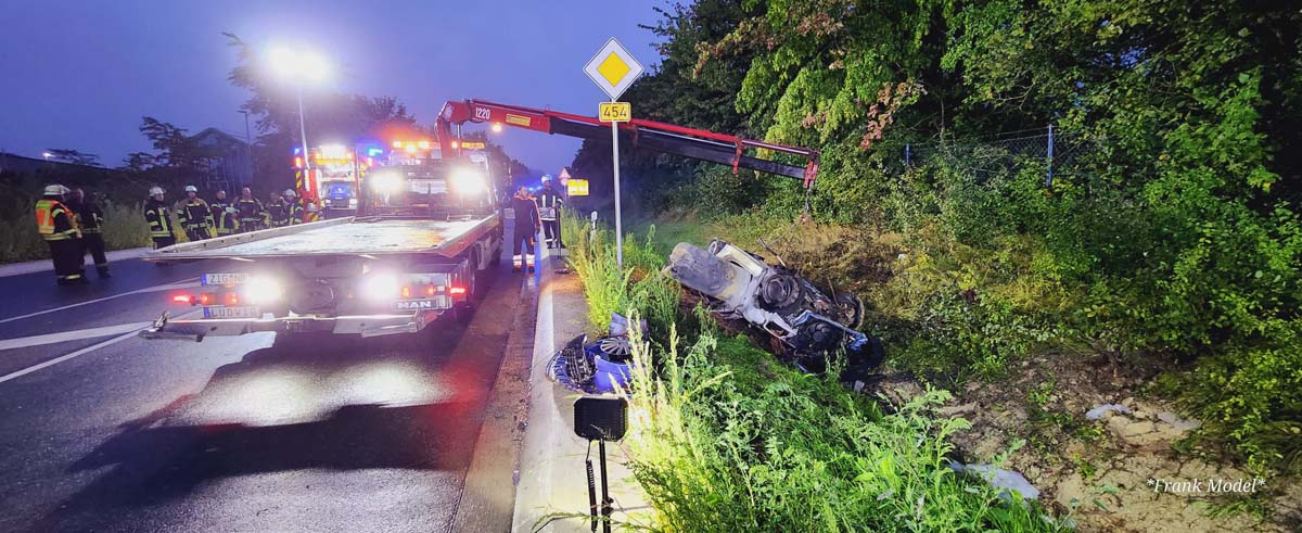 Der Unfall ereignete sich gegen 5:15 Uhr. Die 36-Jährige fuhr von Treysa kommend in Richtung der Ampelkreuzung am Abzweig zur Hessenallee in Ziegenhain. Aus bislang unbekannten Gründen übersah sie offenbar den Kreisel in Höhe der Firma Heidelmann. Sie fuhr augenscheinlich ungebremst über den Kreisel, überschlug sich mit ihrem Auto und kam auf dem Dach liegend im Flutgraben neben der Bundesstraße zum Stillstand.